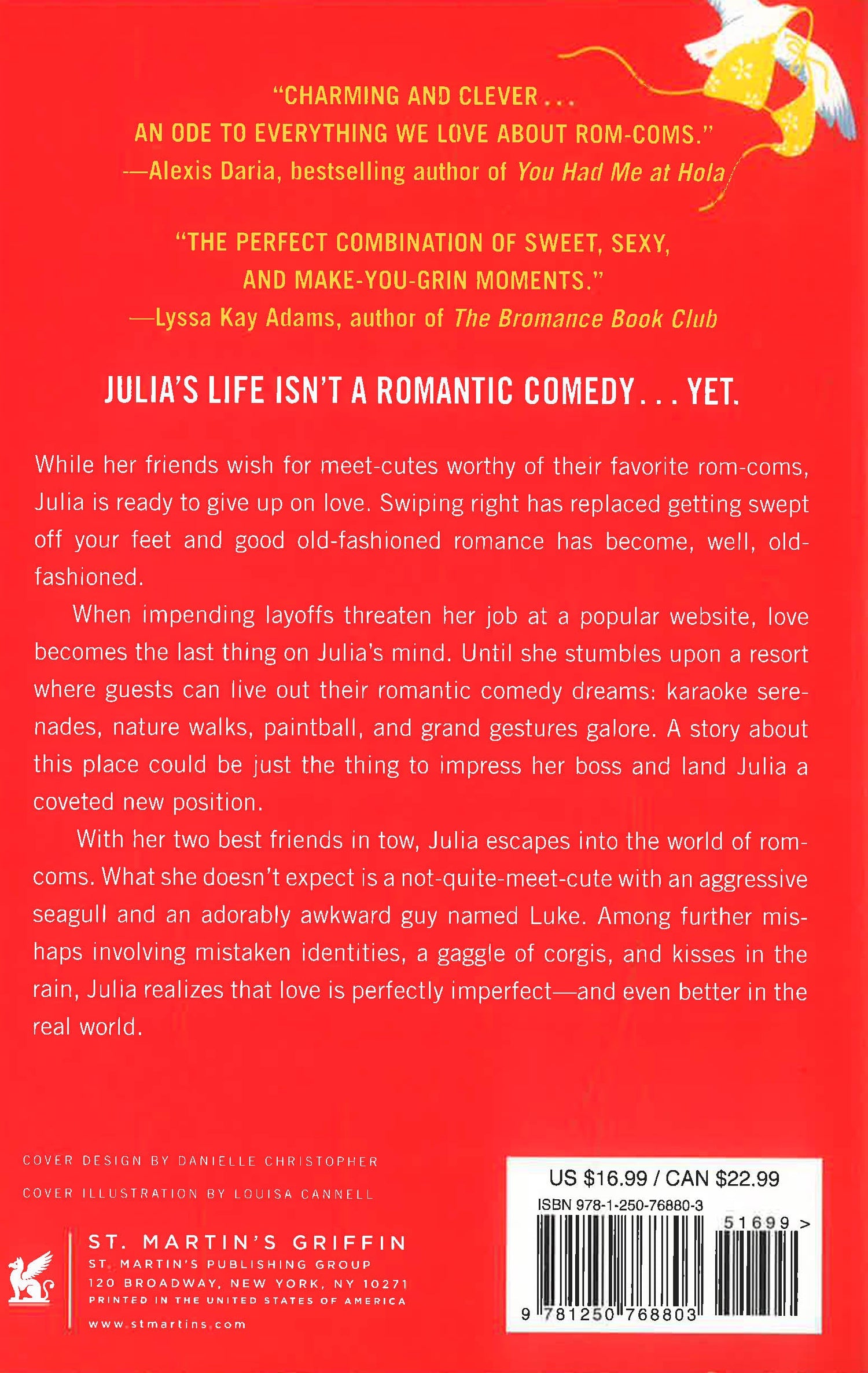 While her friends wish for meet-cutes worthy of their favorite rom-coms, Julia is ready to give up on love. Swiping right has replaced getting swept off your feet and good old-fashioned romance has become, well, old-fashioned. A writer for a popular website, love becomes the last thing on her mind when impending layoffs threaten her job. As Julia searches for the ultimate pitch to impress her boss, she stumbles upon a resort offering guests a chance to live out their romantic comedy dreams. Real life dating is so bleak, who wouldn't want to spend a week in a fantasy rom-com world with your best friends? At the resort, Julia literally falls into a not-quite-meet-cute involving an aggressive seagull and an adorably awkward guy named Luke who is also participating in the rom-com experience. Julia hides the fact she is there to do a story, but Luke harbors a few secrets of his own. Among further encounters with thieving seagulls, a gaggle of corgis, kisses in the rain, and even a karaoke serenade, their feelings deepen quickly. But could their love be real when they haven't been honest about their true identities? Once the fantasy is over, can they have a relationship in the real world? In her trade paperback debut, Melonie Johnson brings her signature humor, sexy romance, and strong female friendships in this hilarious romantic comedy about finding perfectly imperfect love.
