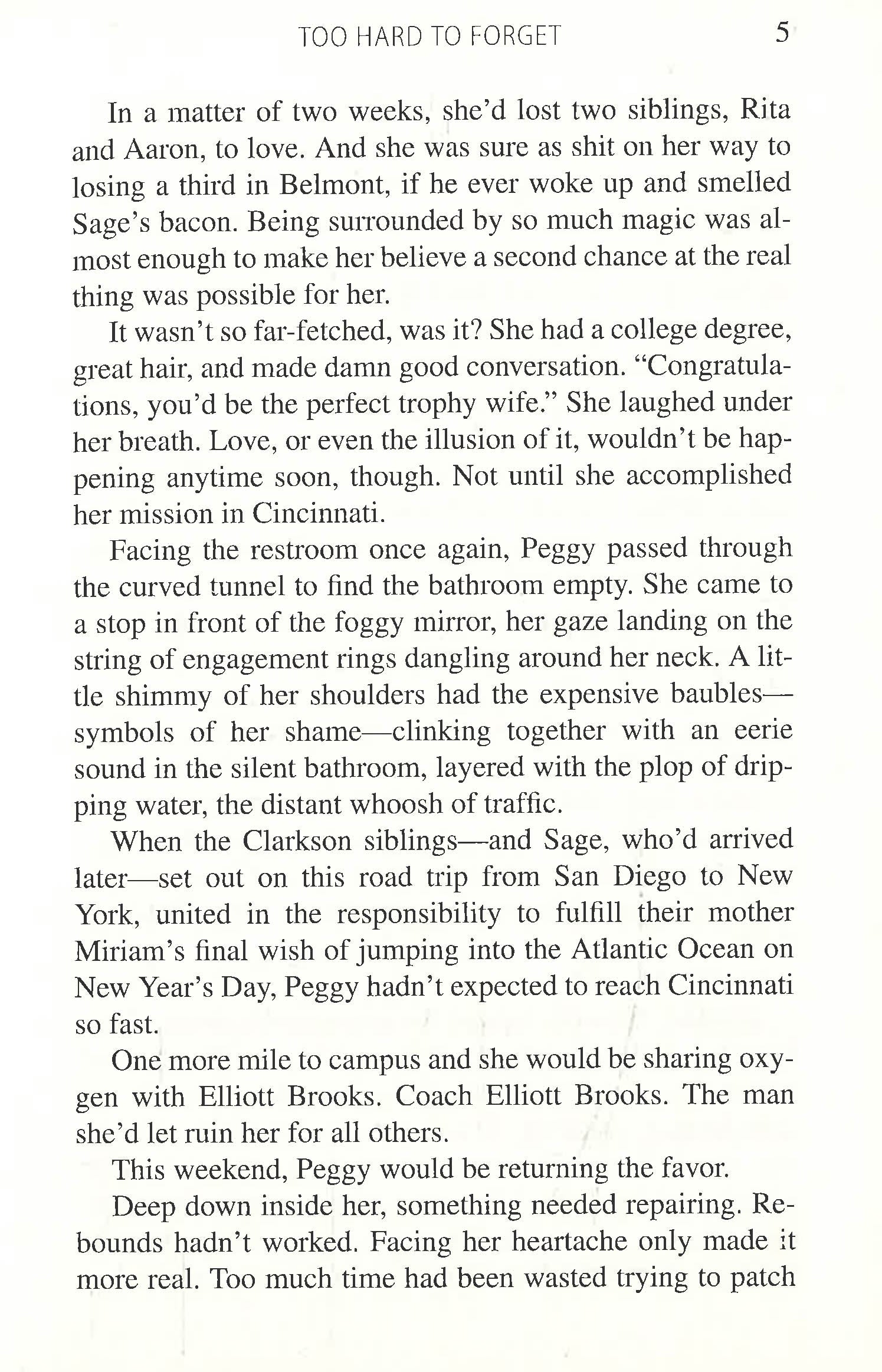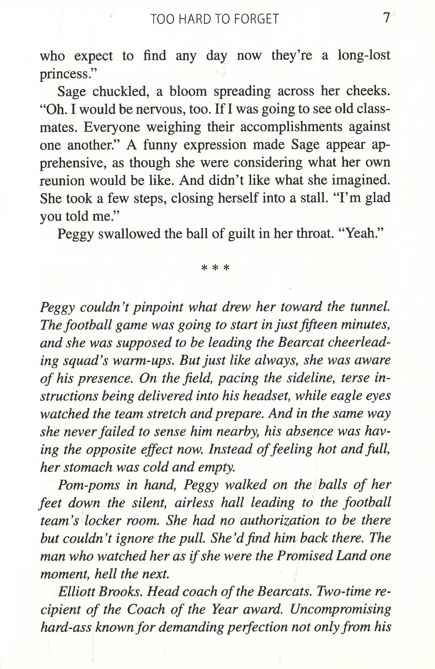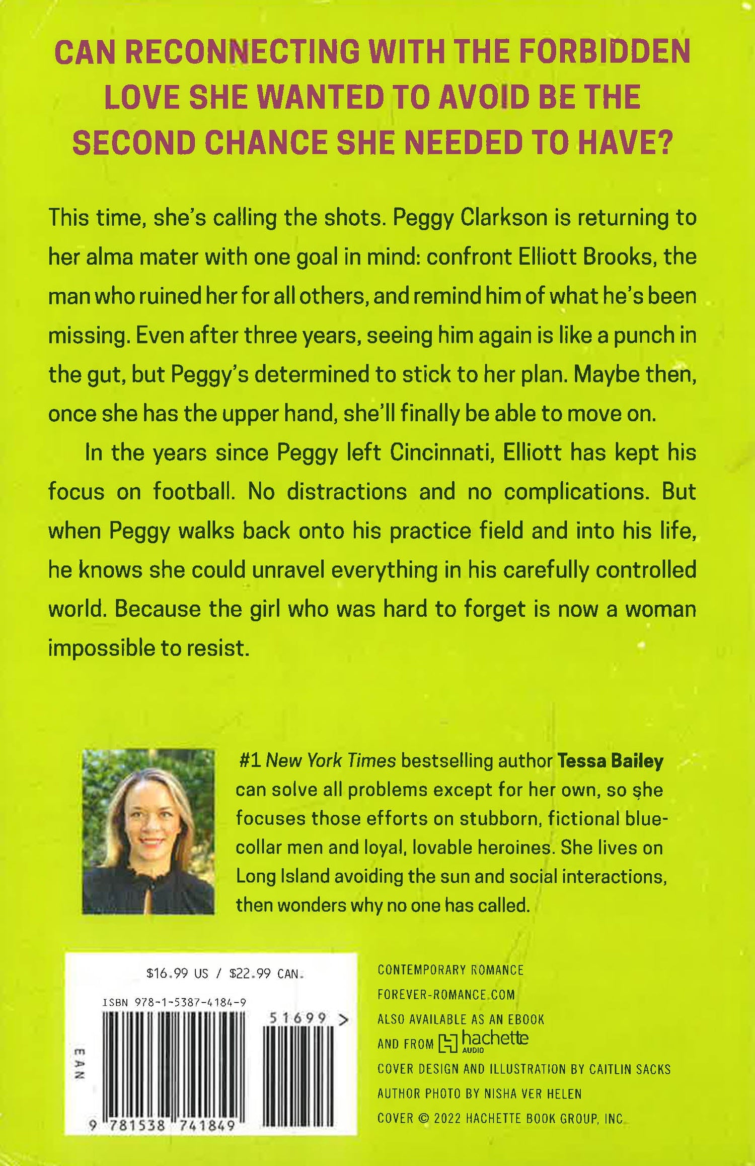 In the years since Peggy left Cincinnati, Elliott has kept his focus on football. No distractions and no complications. But when Peggy walks back onto his practice field and into his life, he knows she could unravel everything in his carefully controlled world. Because the girl who was hard to forget is now a woman impossible to resist.