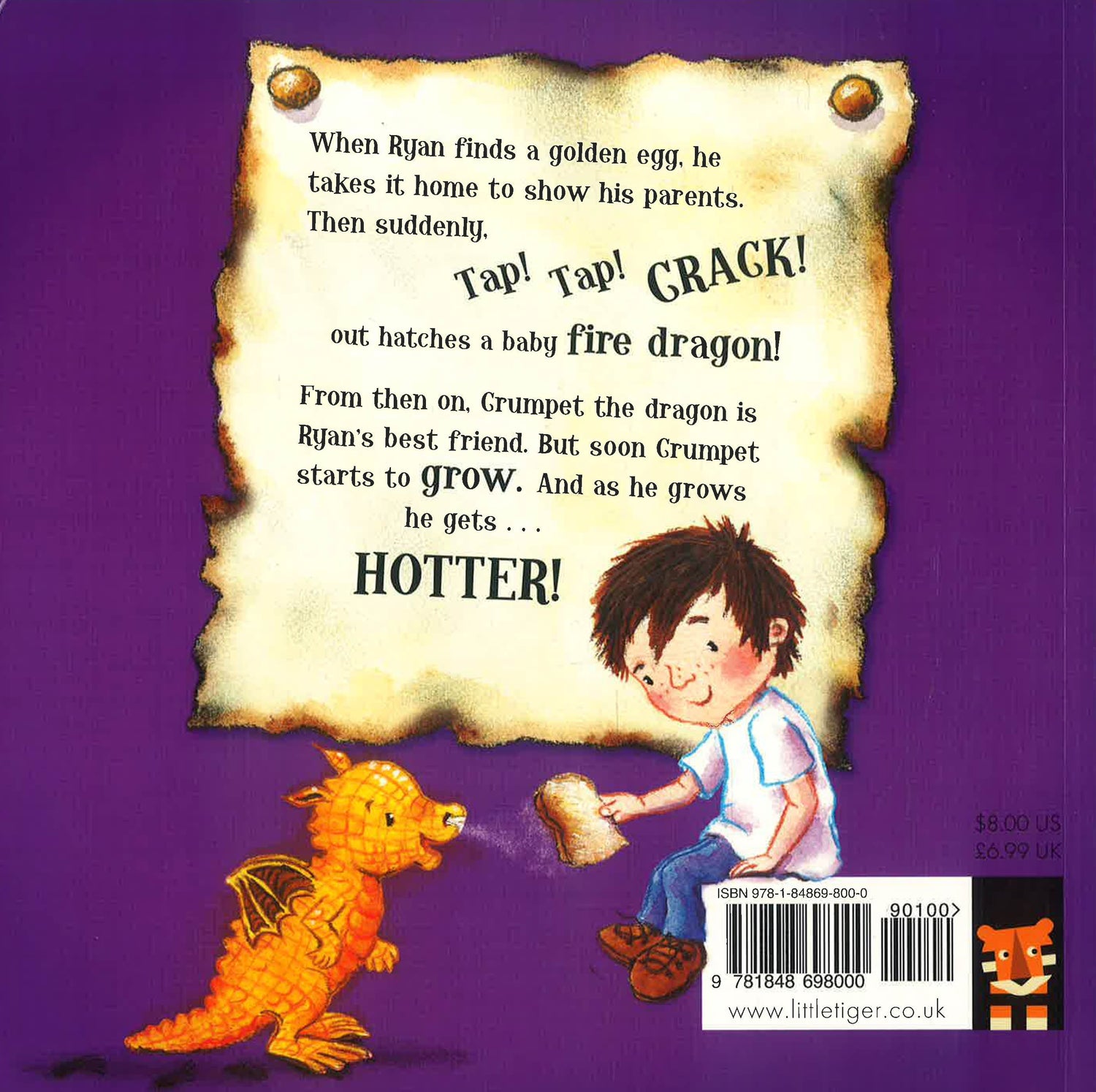 Then suddenly. Tap! Tap! CRACK out hatches a baby fire dragon! From then on. Crumpet the dragon is Ryan's best friend. But. soon Crumpet, starts to grow. And as he grows