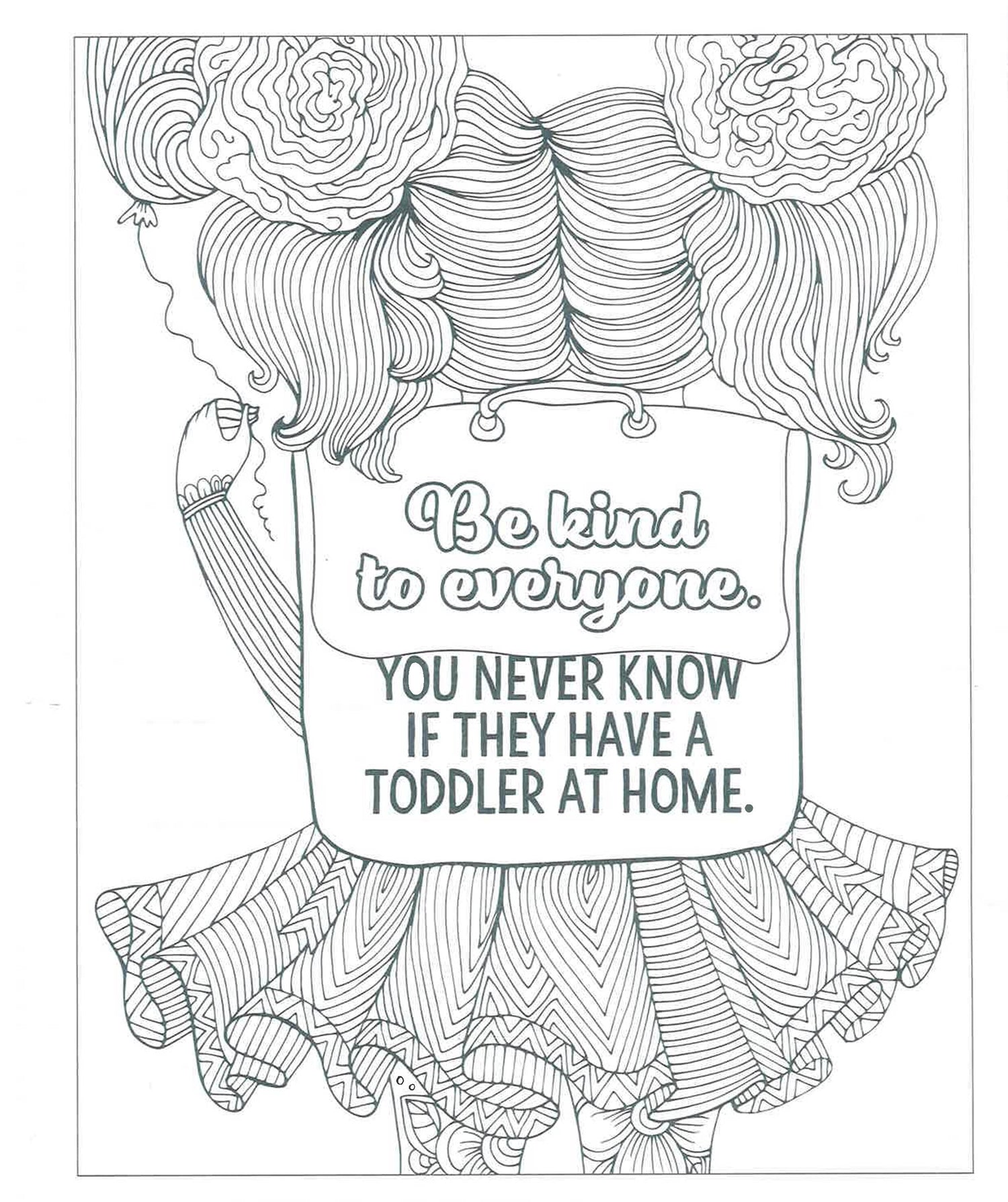 The days are long but the years are short.that's the mom mantra these days. So how to fill all of those looong days with young kids? Coloring! In this humorous coloring book, moms will find art and captions they can relate to, and relax knowing that they're not alone in the craziness of parenthood. By taking a few minutes to color the stress away during naptime, pretty soon they'll find that the days fly by.