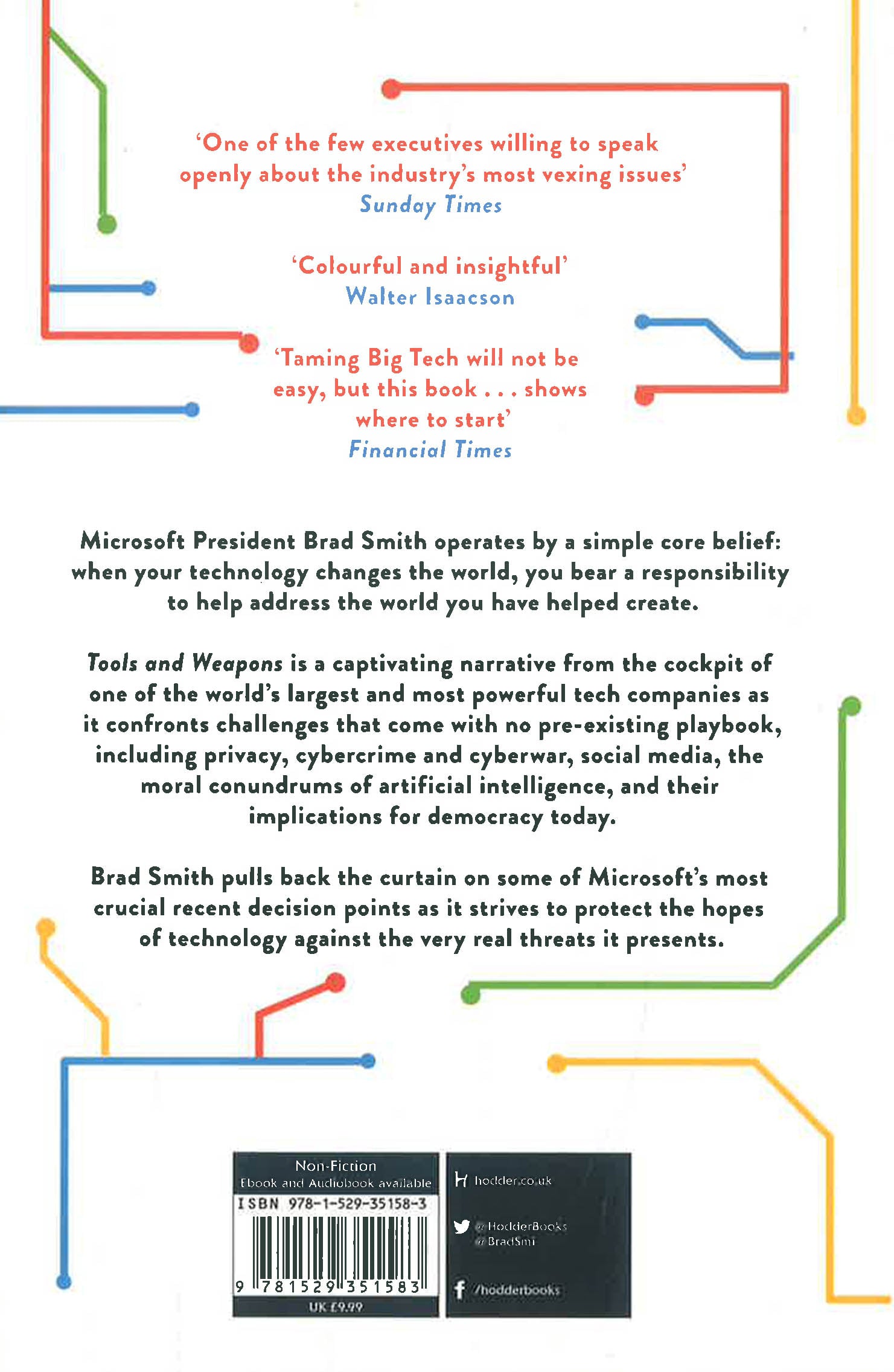 In Tools and Weapons, Brad Smith and Carol Ann Browne bring us a captivating narrative from the cockpit of one of the world's largest and most powerful tech companies as it finds itself in the middle of some of the thorniest emerging issues of our time. These are challenges that come with no pre-existing playbook, including privacy, cybercrime and cyberwar, social media, the moral conundrums of artificial intelligence, big tech's relationship to inequality, and the challenges for democracy, far and near. While in no way a self-glorifying "Microsoft memoir," the book pulls back the curtain remarkably wide onto some of the company's most crucial recent decision points as it strives to protect the hopes technology offers against the very real threats it also presents. There are huge ramifications for communities and countries, and Brad Smith provides a thoughtful and urgent contribution to that effort.