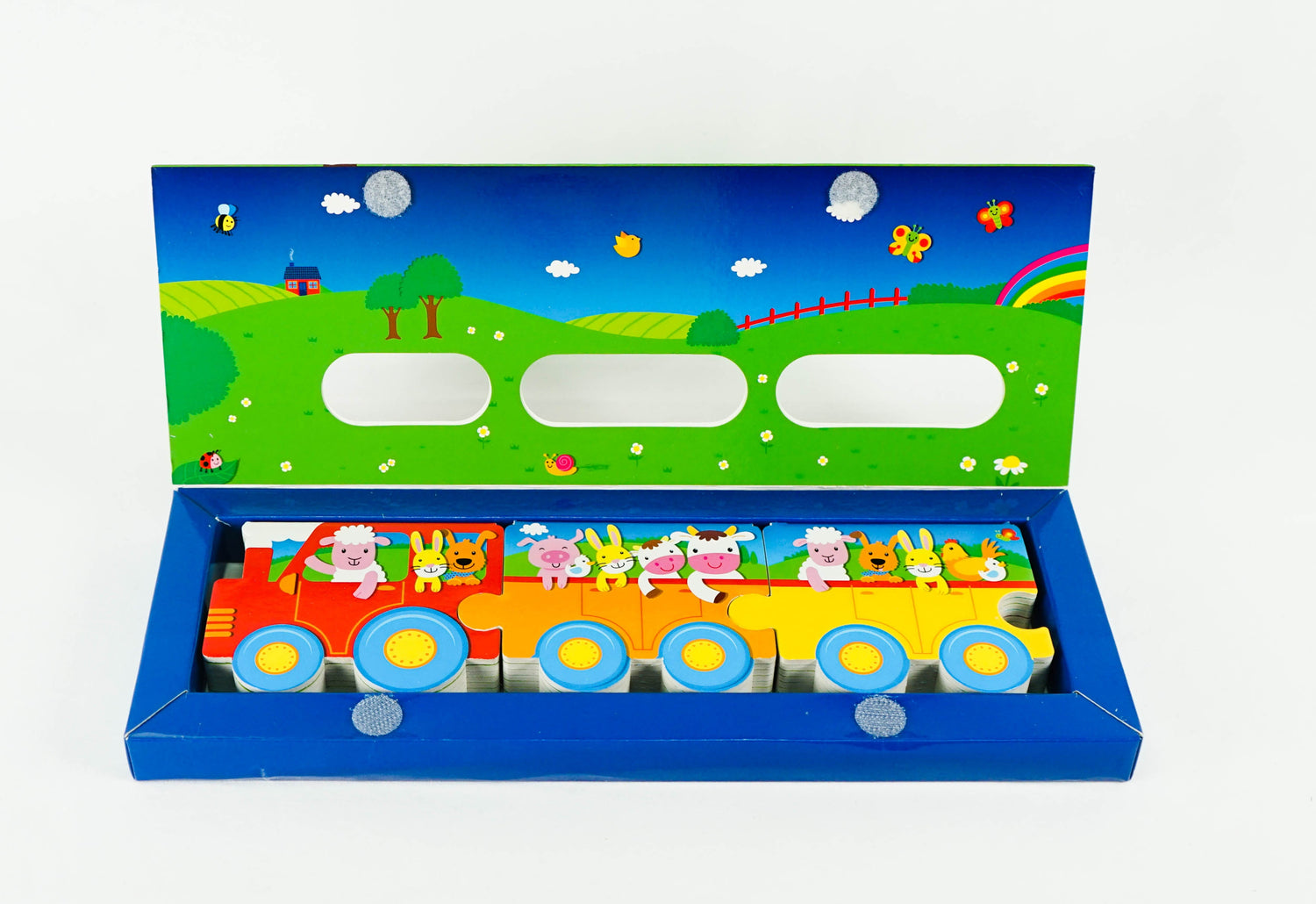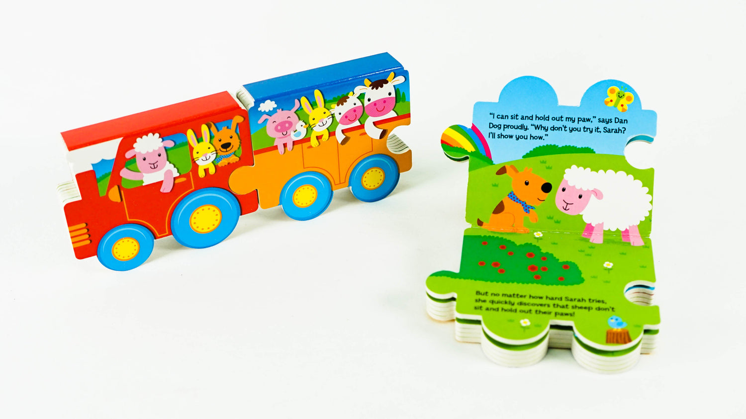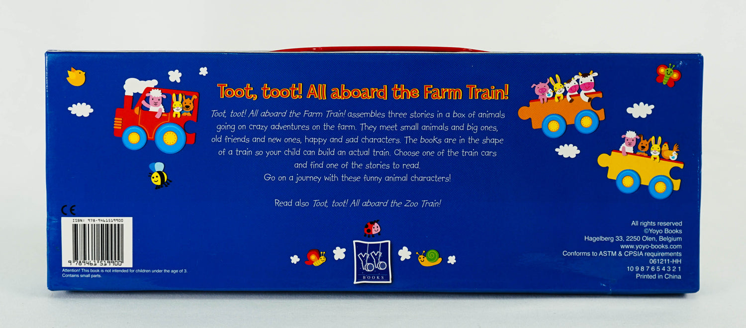 Toot, toot! All aboard the farm train! assembles three stories in a box of animals going on crazy adventures on the farm. They meet small animals and big ones, old friends and new ones, happy and sad characters. The books are in the shape of a train so your child can build an actual train. Choose one of the train cars and find one of the stories to read. Go on a journey with these funny animal characters! (Age Range 3-6)