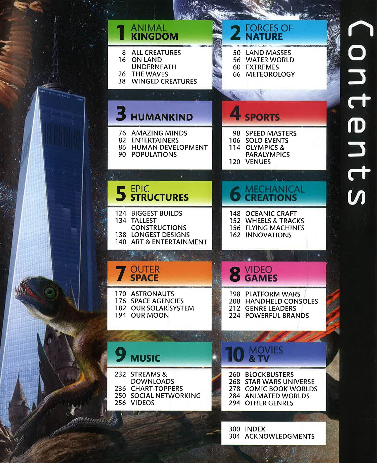 Top 10 of Everything 2018 is divided into genres including Epic Structures, Outer Space, Forces of Nature and Humankind, and includes lists, charts and tables to break down the details of each amazing fact.