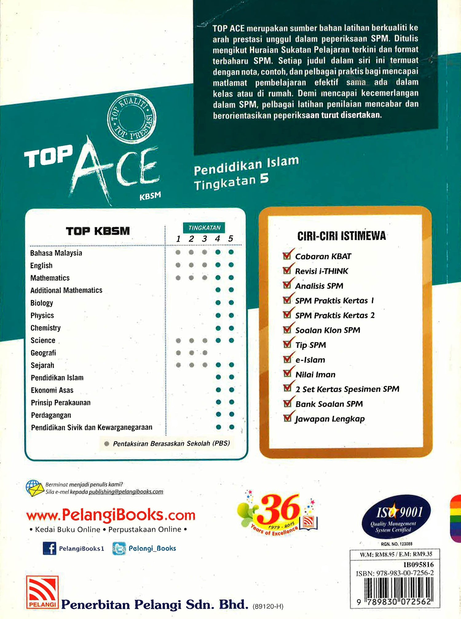 TOP ACE merupakan sumber bahan latihan berkualiti ke arah prestasi unggul dalam peperiksaan SPM. Ditulis mengikut Huraian Sukatan Pelajaran terkini dan format terbaharu SPM. Setiap judul dalam siri ini ternmuat dengan nota, contoh, dan pelbagai praktis bagi mencapai matlamat pembelajaran efektif sama ada dalam kelas atau di rumah. Demi mencapai kecemerlangan dalam SPM, pelbagai latihan penilaian mencabar dan berorientasikan peperiksaan turut disertakan.