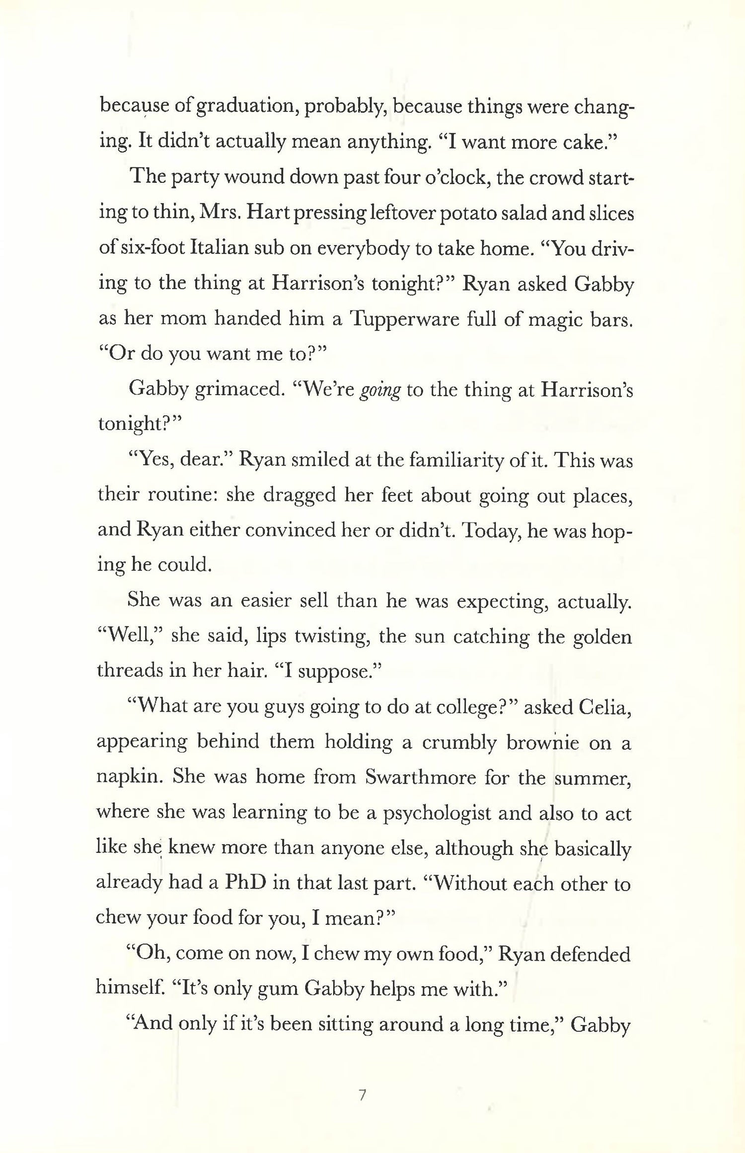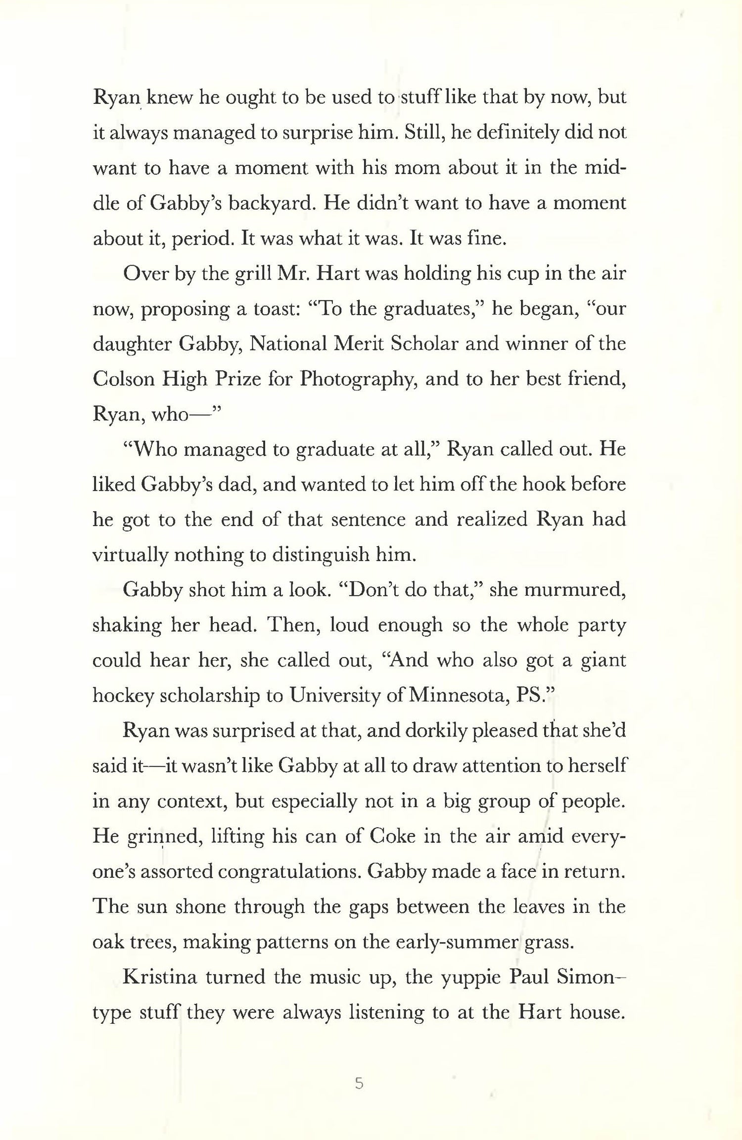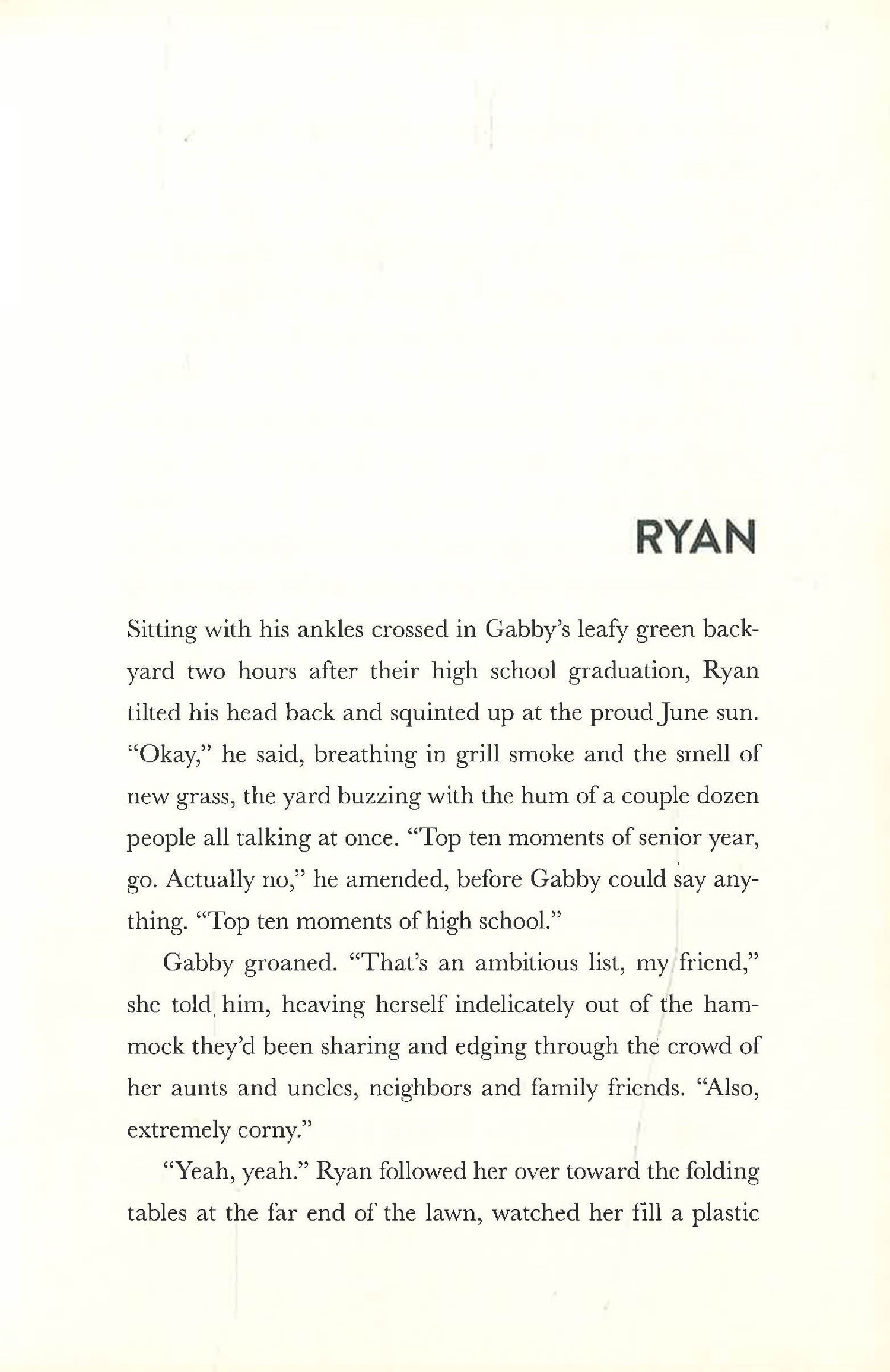 Ryan McCullough and Gabby Hart are the unlikeliest of best friends. Prickly, anxious Gabby would rather do literally anything than go to a party. Ultra-popular Ryan is a hockey star who can get any girl he wants - and frequently does. But somehow their relationship just works; from dorky Monopoly nights to rowdy house parties to the top ten lists they make about everything under the sun. Now, on the night of high school graduation, everything is suddenly changing - in their lives, and in their relationship. As they try to figure out what they mean to each other and where to go from here, they make a final top ten list: this time, counting down the top ten moments of their friendship.