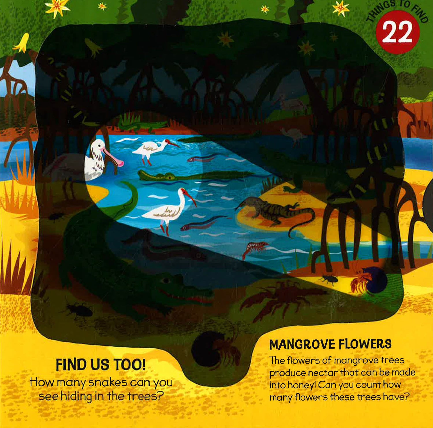 Includes 4 magic flashlights! Shine the magic torches to find the creatures under