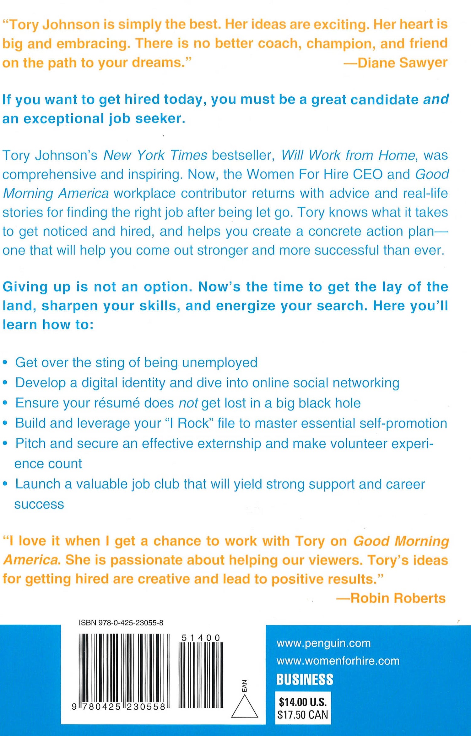 If you want to get hired today, you must be a great candidate and an exceptional job seeker. Tory Johnson's New York Times bestseller, Will Work from Home, was comprehensive and inspiring. Now, the Women For Hire CEO and Good Morning America workplace contributor returns with advice and real-life stories for finding the right job after being let go. Tory knows what it takes to get noticed and hired, and helps you create a concrete action plan-one that will help you come out stronger and more successful than ever. Giving up is not an option. Now's the time to get the lay of the land, sharpen your skills, and energize your search. Here you'll learn how to: get over the sting of being unemployed; develop a digital identity and dive into online social networking; ensure your resume does not get lost in a big black hole; build and leverage your "I Rock" file to master essential self-promotion; pitch and secure an effective externship and make volunteer experience count; and launch a valuable job club that will yield strong support, job leads, and career success.
