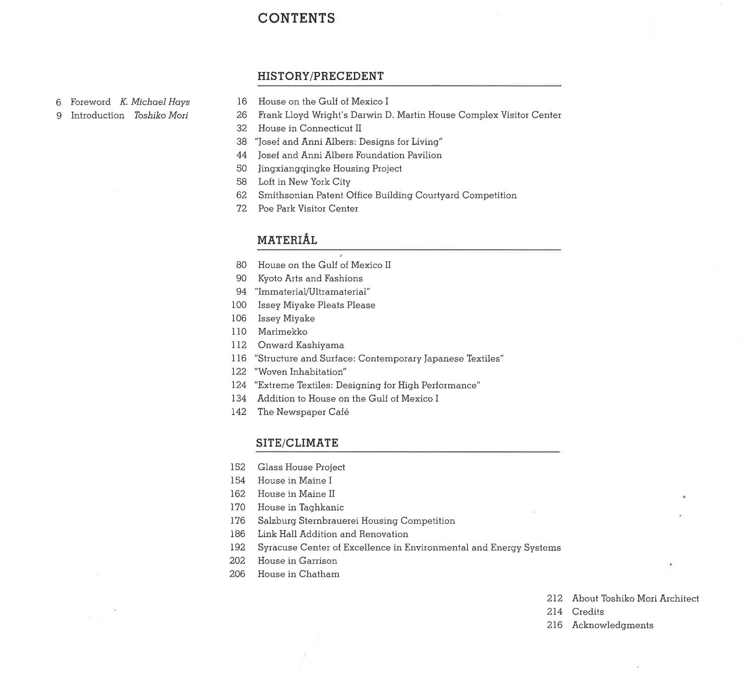 Founded in New York City in 1981, Toshiko Mori Architect is known for using both new and traditional materials and for integrating architecture with light and landscape. This monograph, the first on the practice, includes more than twenty-five residential, cultural, institutional, and commercial projects. The firm has designed private houses in Maine, New York, and Florida, including additions to modern residences by Paul Rudolph and Marcel Breuer. In addition, Toshiko Mori Architect specializes in exhibition designs, notably various installations of textiles and other materials at the Museum of Modern Art and the Cooper-Hewitt, National Design Museum.