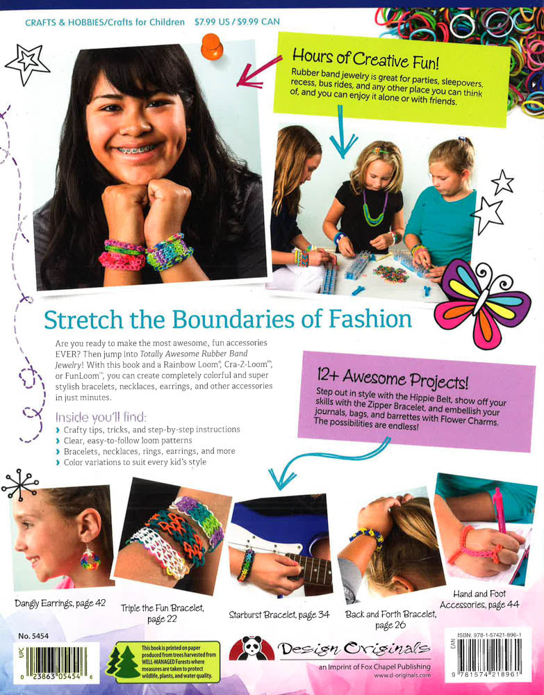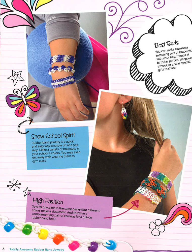 Are you ready to make the most awesome, fun new accessories EVER? Then jump in to Totally Awesome Rubber Band Jewelry, the ultimate companion for making the next big thing for cool kids! With just a few simple tools and easy-to-follow patterns, you can create completely colourful and super stylish bracelets, necklaces, earrings, mini purses and other accessories in just minutes. Rubber band jewellery is great for parties, sleepovers, breaktime, bus rides and any other place you can think of, and you can enjoy it alone or with friends. Be pretty in pink with a Zigzag Bracelet, hit the pool in style with Toe-and-Ankle Chains and tote your new Mini Purse to the shops. The possibilities are endless. All you need is a hook (a crochet hook will do), small rubber bands in all the colours you love, small plastic clips to connect your links and a loom such as Rainbow Loom(t) or Cra-Z-Loom(t) to bring it all together.