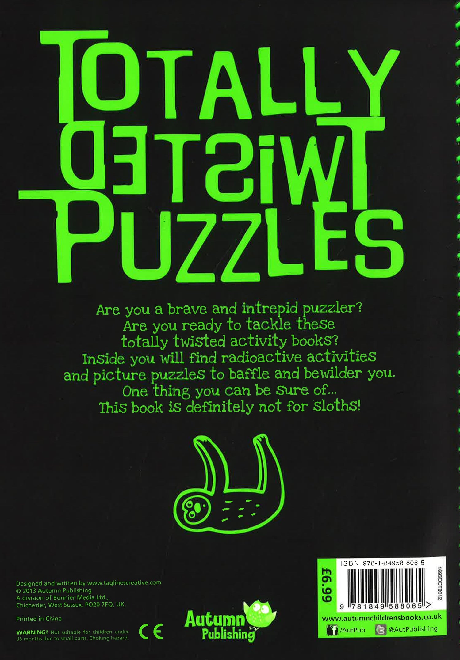 Are you a brave and intrepid puzzler? Are you ready to tackle these totally twisted activity books? Find radioactive activities, strange words and picture puzzles to baffle and bewilder you.One thing you can be sure of... this book is definitely not for Sloths!
