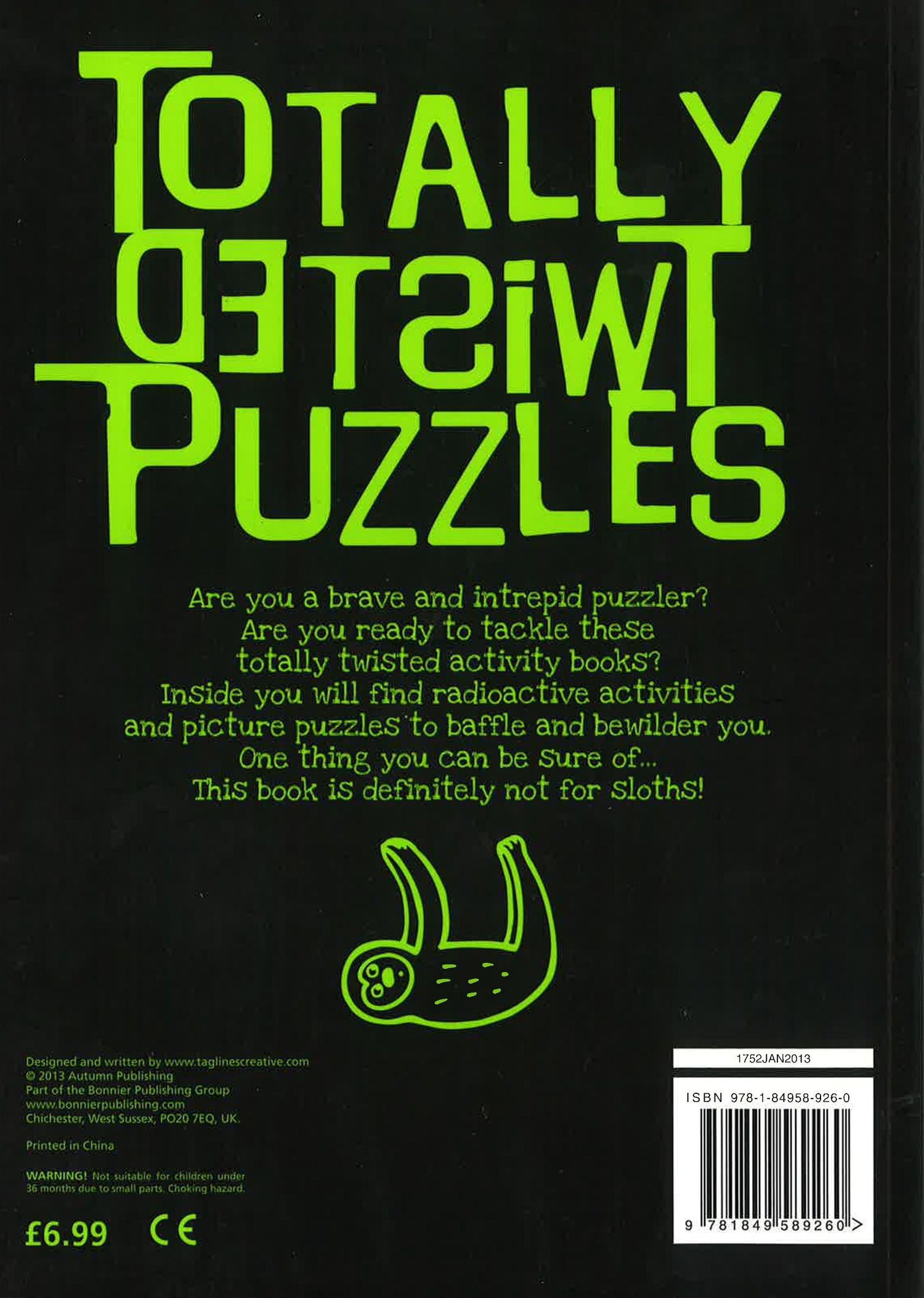 Totally Twisted activity books feature activities, words, and puzzles that will keep kids amused and entertained! Are you ready to tackle this totally twisted activity book? Inside you will find activities and picture puzzles that will baffle and bewilder. One thing is for sure . . . This book is definitely not for sloths!