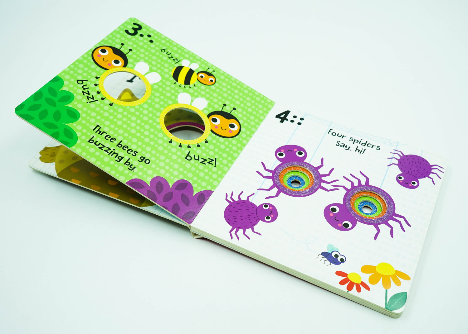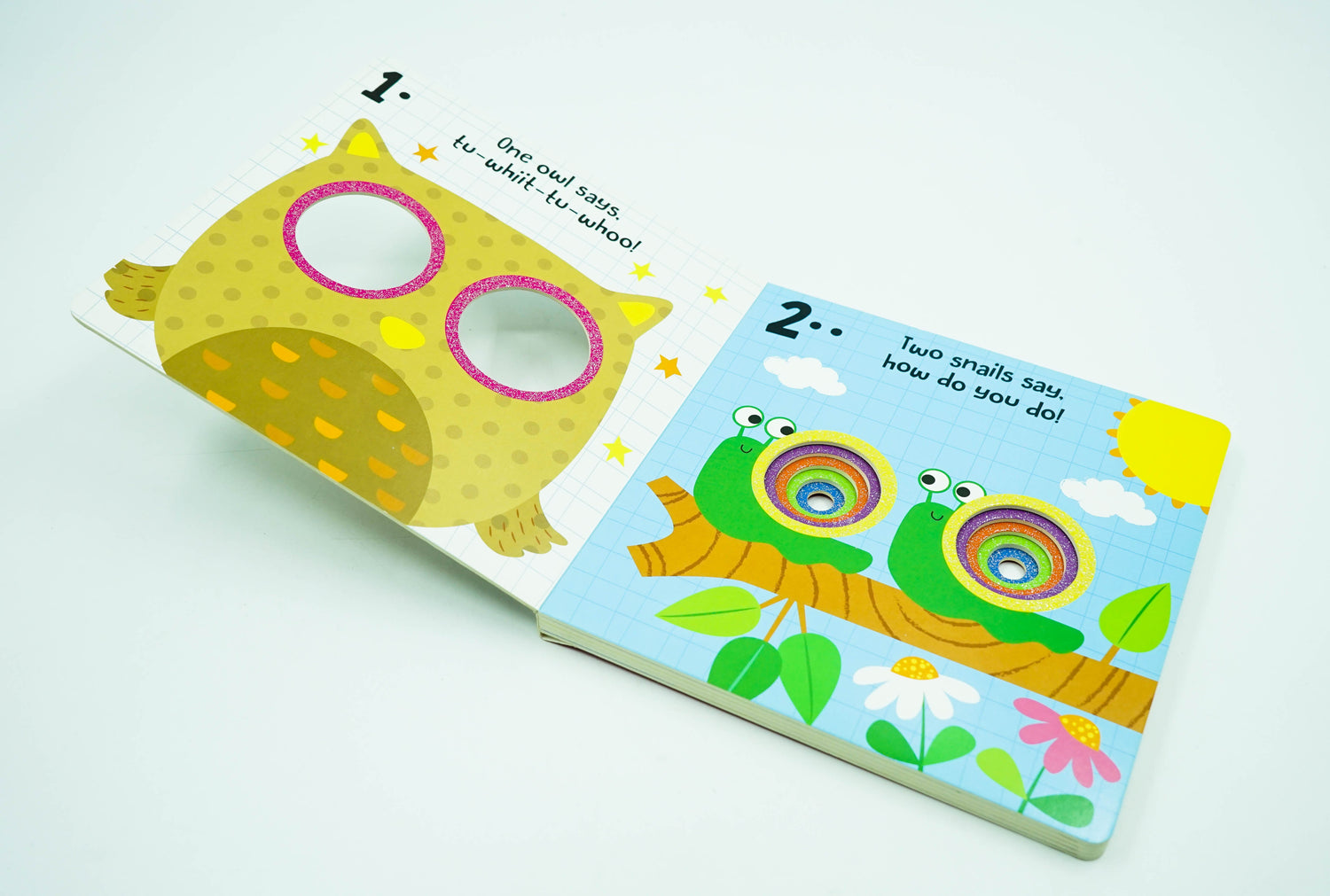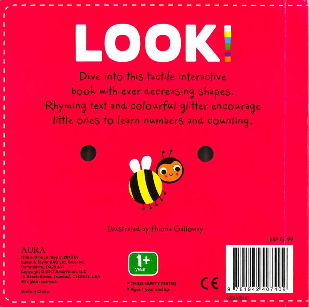 Dive into this tactile interactive book with ever decreasing shapes. Rhyming text and colourful glitter encourage little ones to learn numbers and counting.