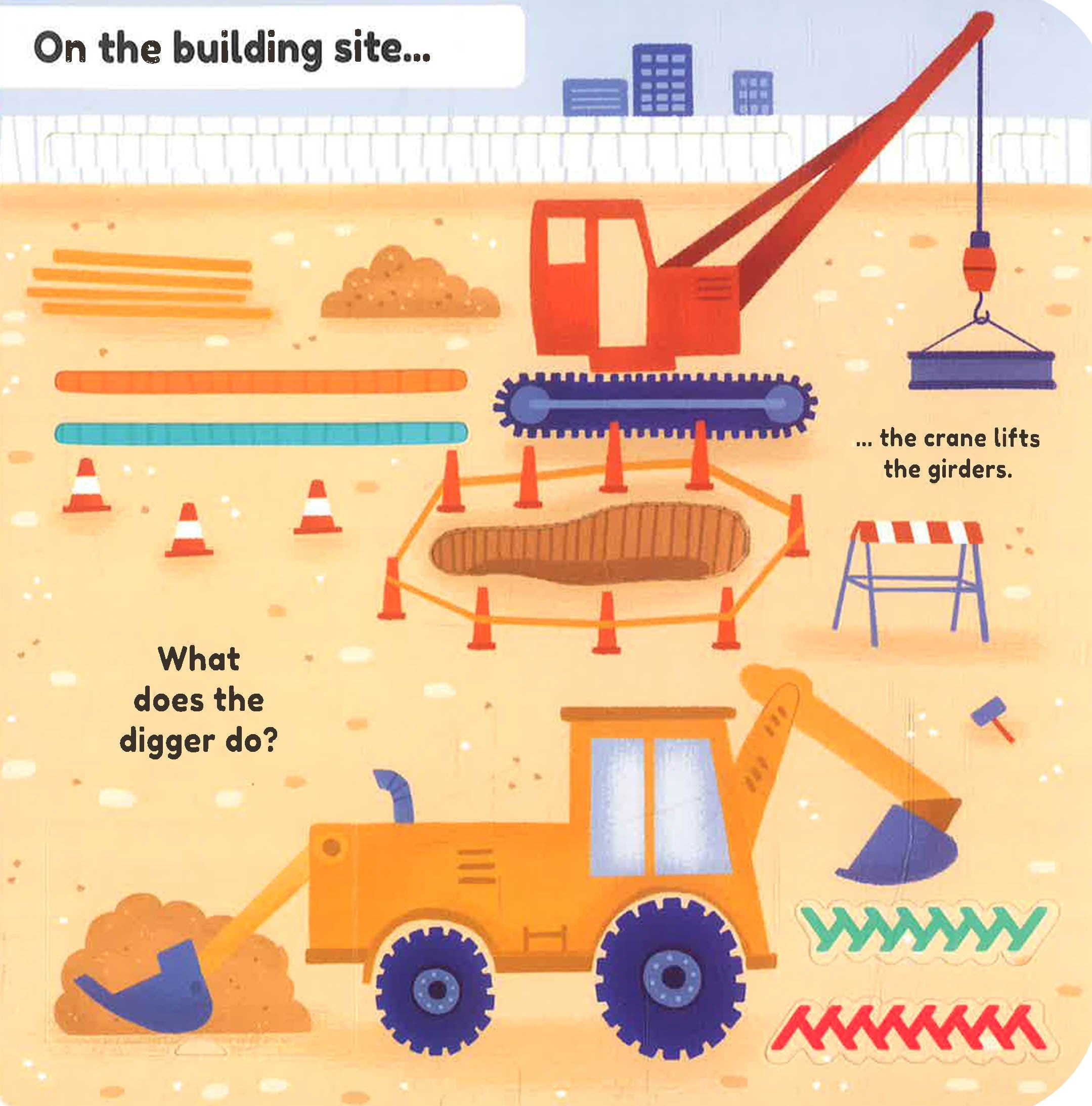 Follow touch-and-feel train tracks and chunky tyre treads to meet all kinds of things that go.