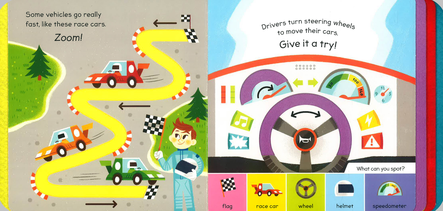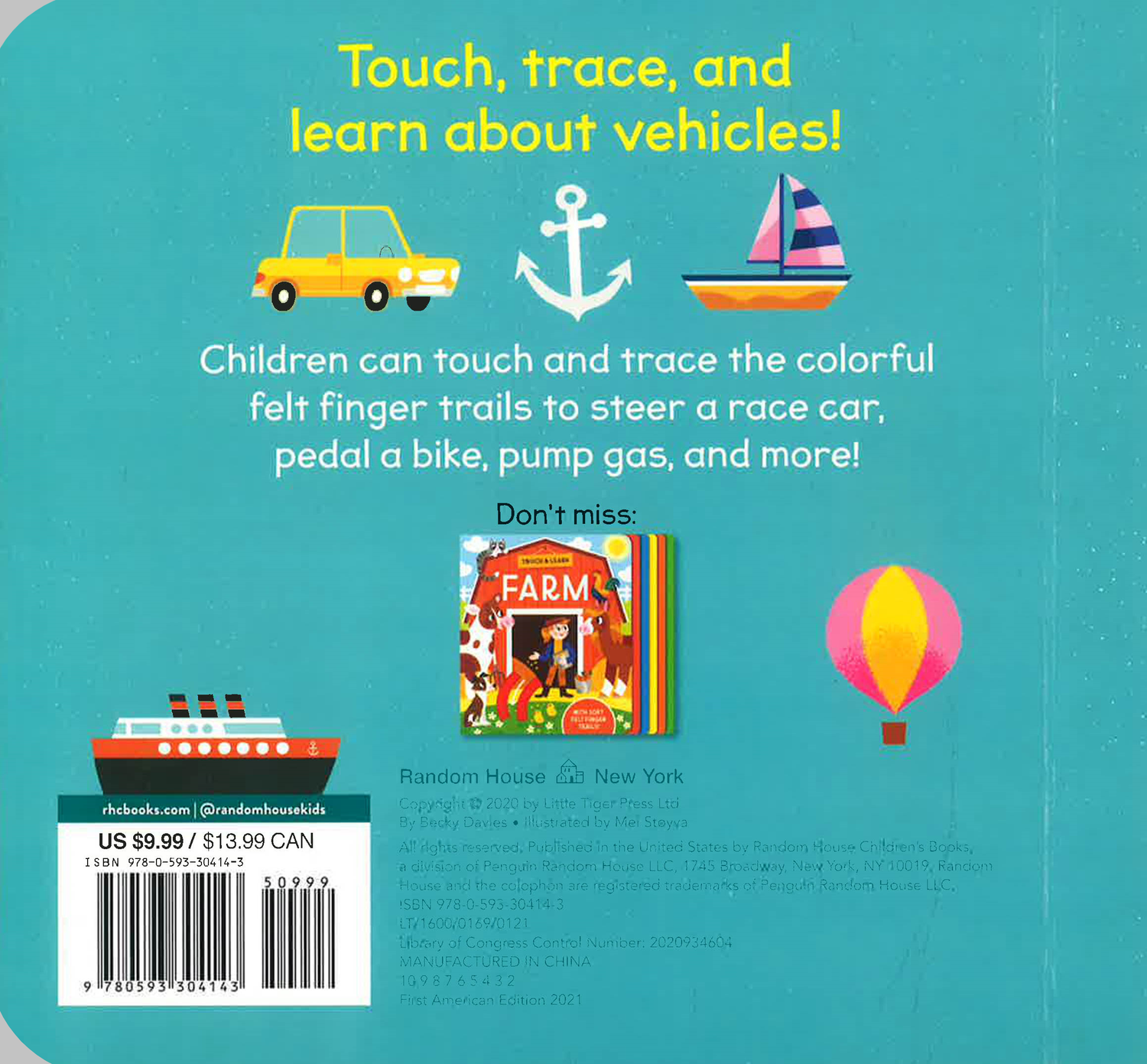 Little ones can touch and trace the felt finger trails in this book that introduces them to all kinds of vehicles!