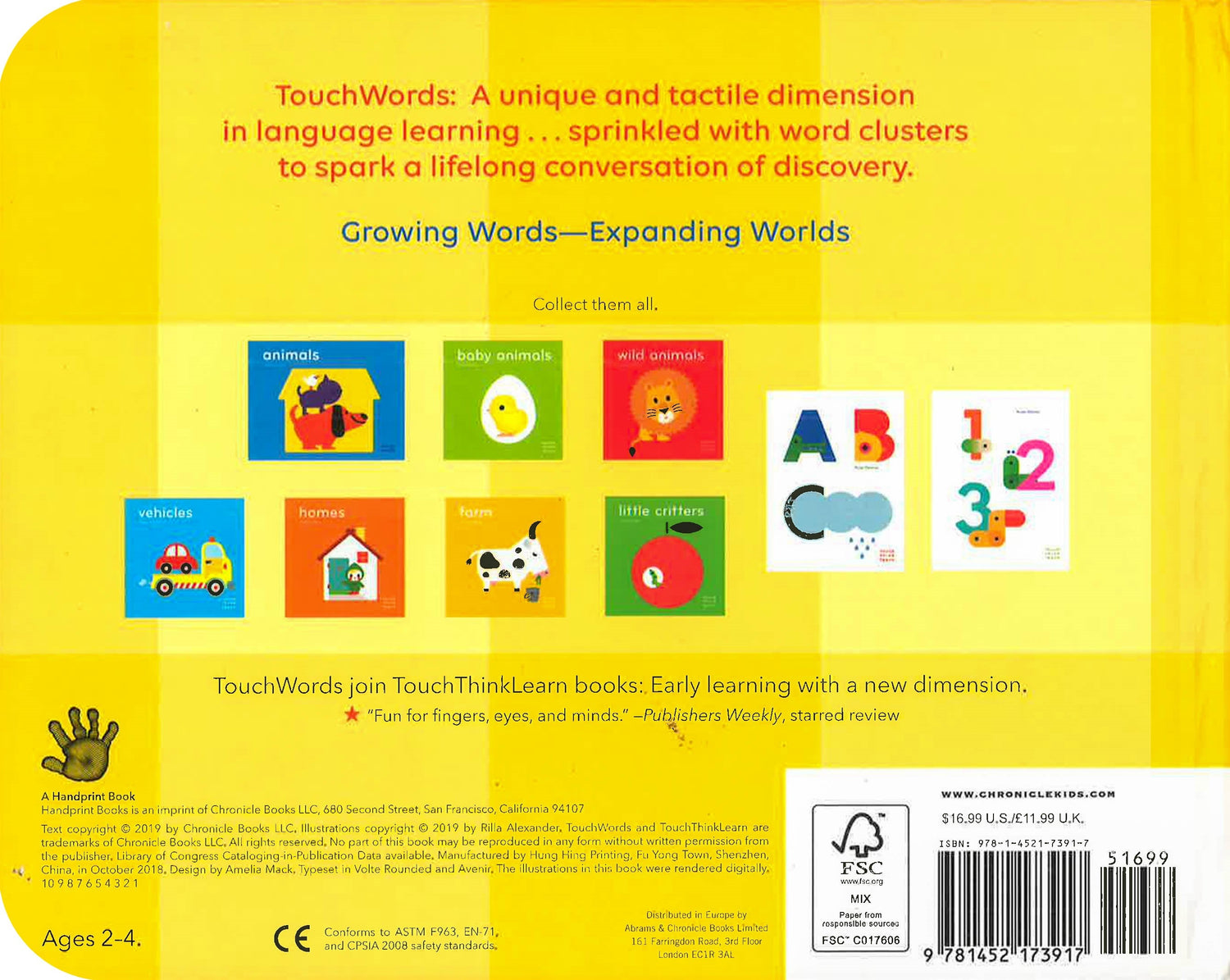 TouchWords is a brand new extension to the beloved, ground-breaking TouchThinkLearn series now with raised letters that fit into die-cut shapes! This is a full hands-on, sensory experience, associating the tactile shapes of letters with the objects. Rilla Alexander executes a fresh design incorporating the classic elements of the TouchThinkLearn first words format, with core vocabulary and stretch words on each page helping children expand their vision of words and how they work together.
