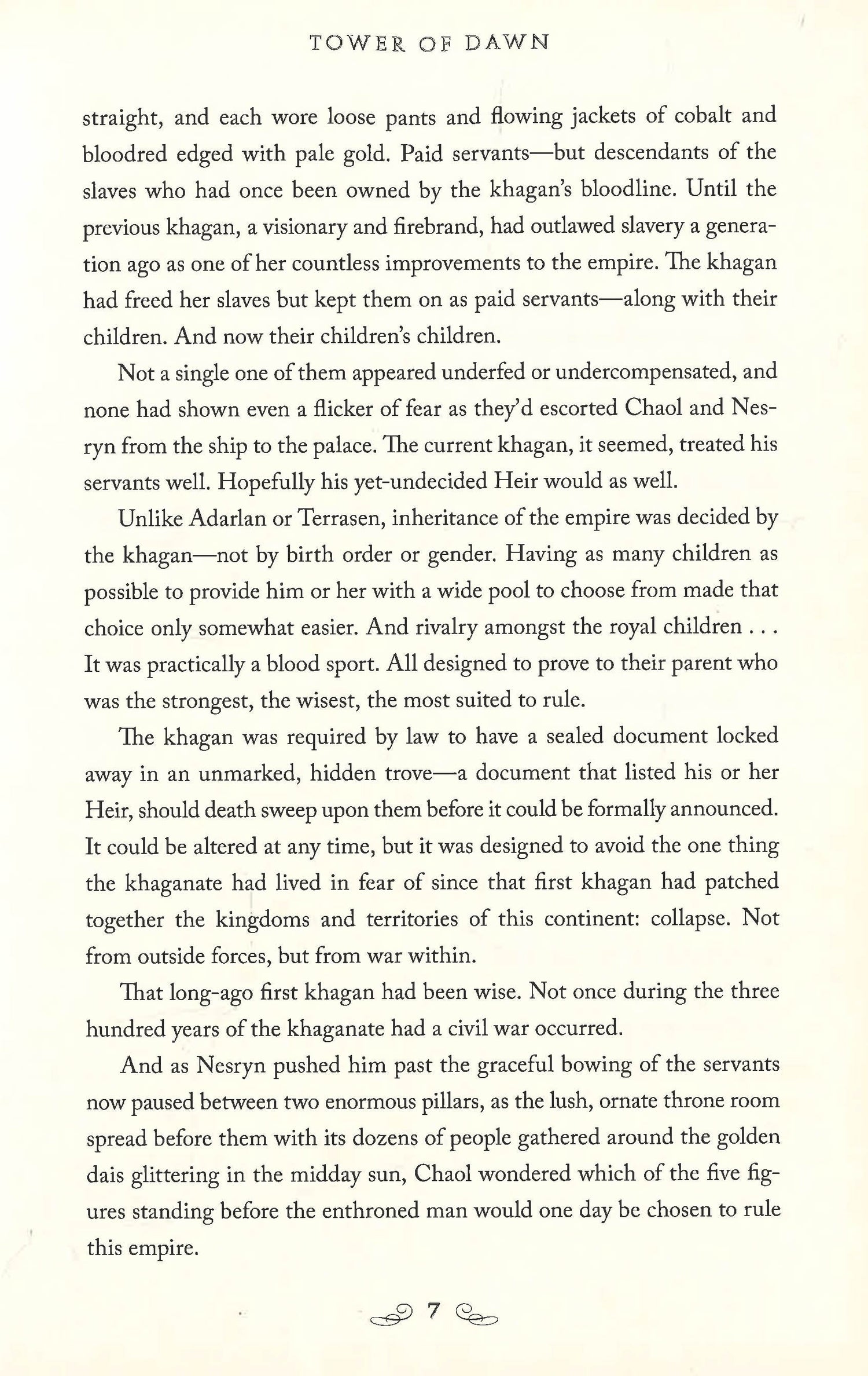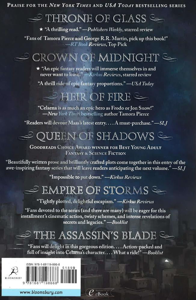 Chaol Westfall has arrived in the city of Antica to forge an alliance with the Khagan of the Southern Continent's vast armies and to seek healing at the famed Torre Cesme. Yrene Towers, a healer, has no desire to help the young lord, yet she has sworn an oath to assist those in need and she will honor it-despite the shadows from his past, which could engulf them both.