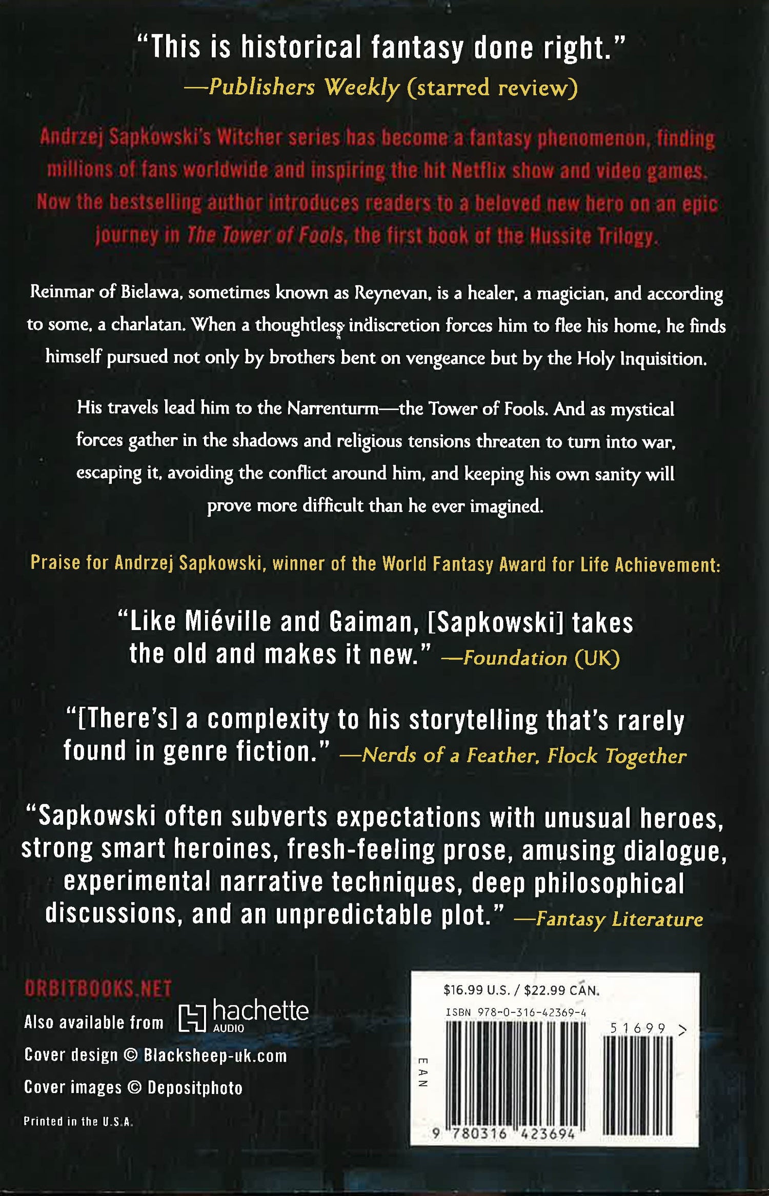 Andrzej Sapkowski's Witcher series has become a fantasy phenomenon, finding millions of fans worldwide and inspiring the hit Netflix show and video games. Now the bestselling author introduces readers to a new hero on an epic journey in The Tower of Fools, the first book of the Hussite Trilogy.