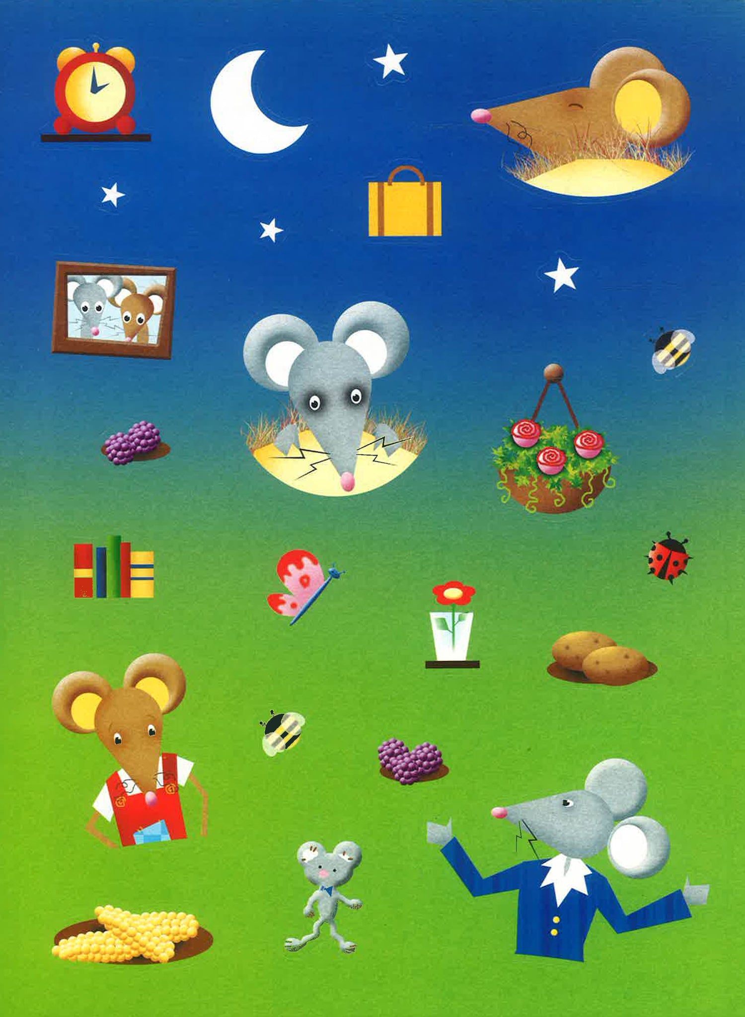 Town Mouse and Country Mouse. Stick a Story, Four traditional tales illustrated scene by scene on a concertina-folded frieze. As the child reads the very simple story, he or she positions the low-tack stickers to cmplete the picture.