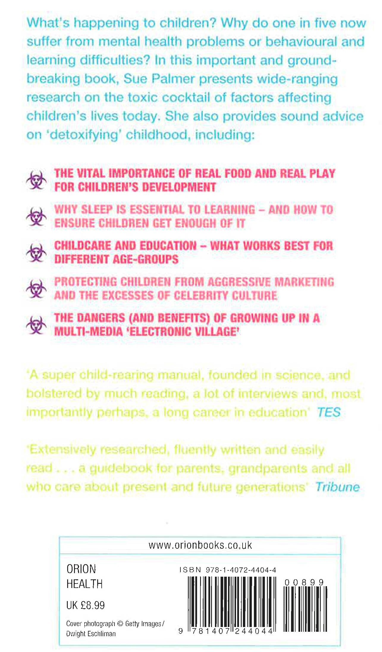 What's happening to children? Why do one in five now suffer mental health problems or behavioural and learning difficulties? In this important and ground-breaking book, Sue Palmer presents wide-ranging research on the toxic cocktail of factors affecting children's lives today. She also provides sound advice on detoxifying childhood.