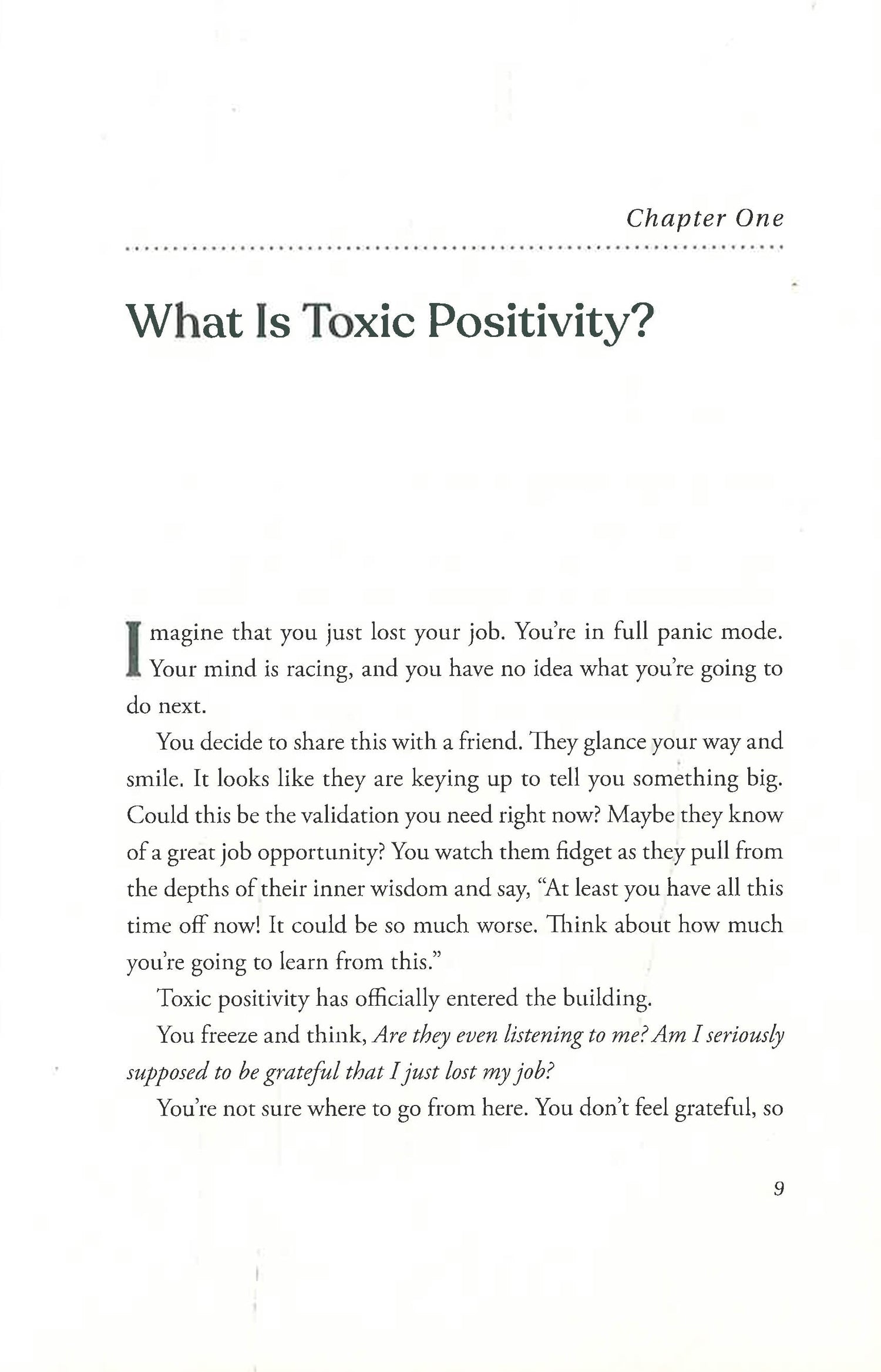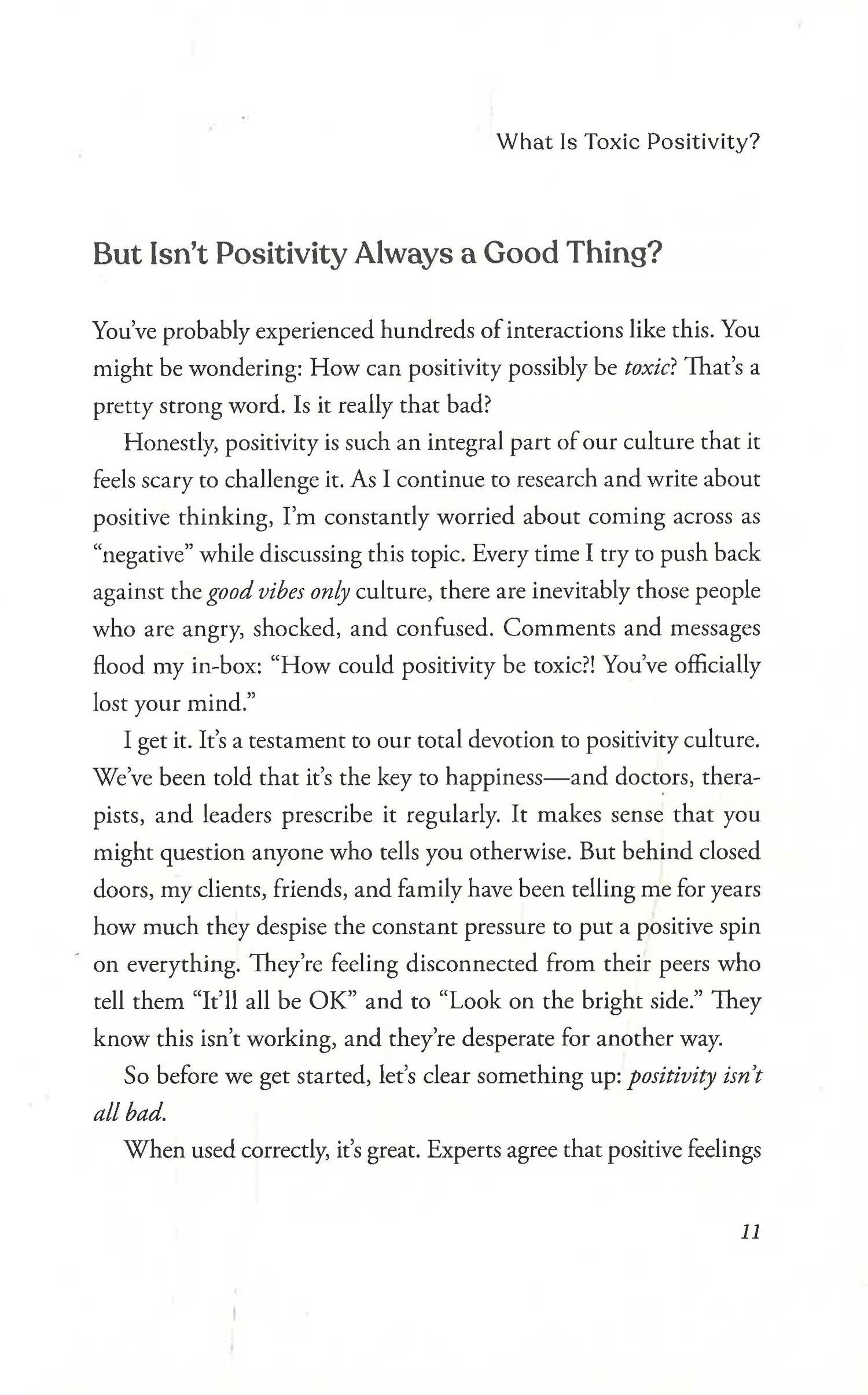 Every day, we're bombarded with pressure to be positive. From 'good vibes only' and 'life is good' memes, to endless advice, to 'look on the bright side,' we're constantly told that the key to happiness is silencing negativity wherever it crops up, in ourselves and in others. Even when faced with illness, loss, breakups, and other challenges, there's little space for talking about our real feelings-and processing them so that we can feel better and move forward.