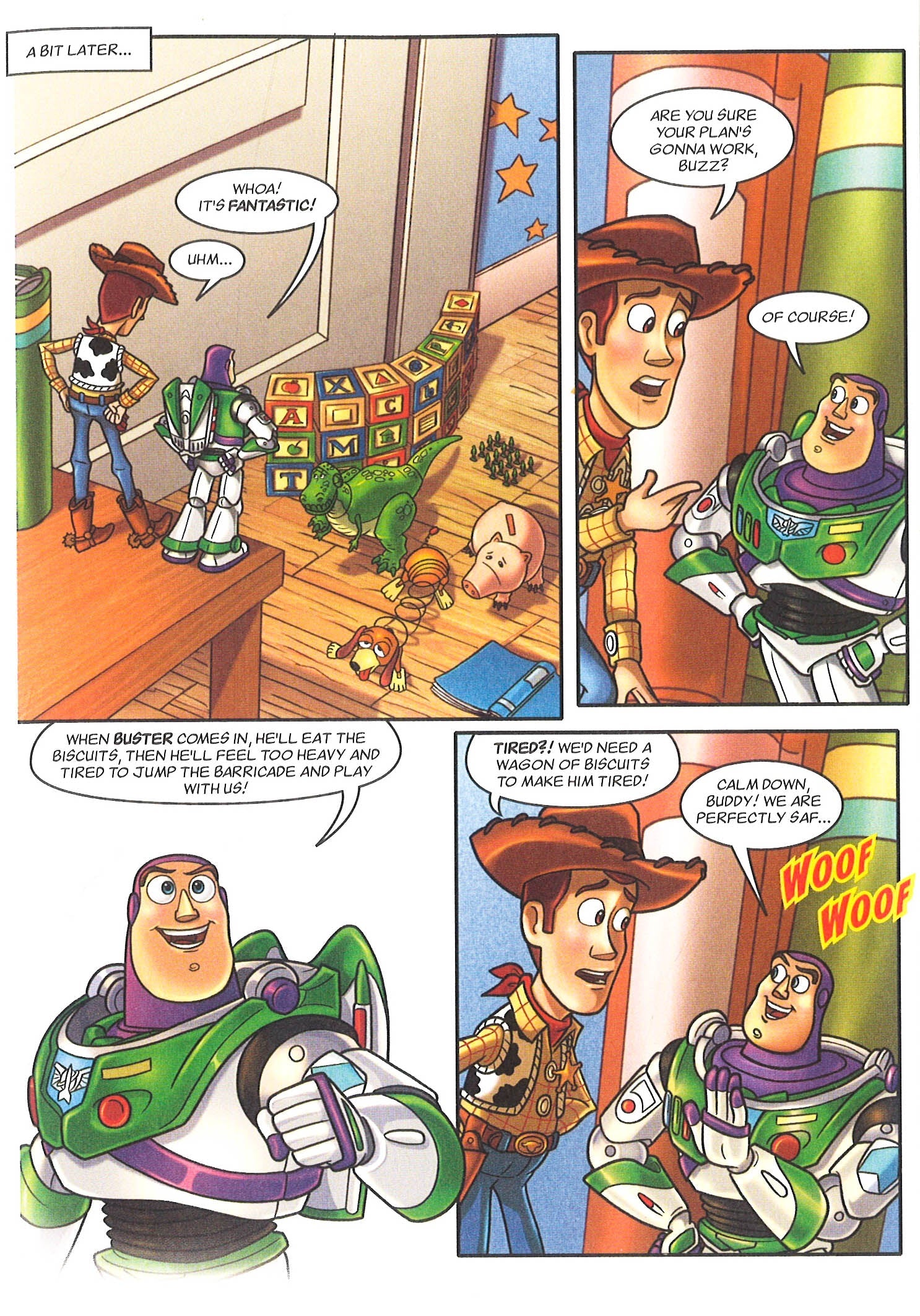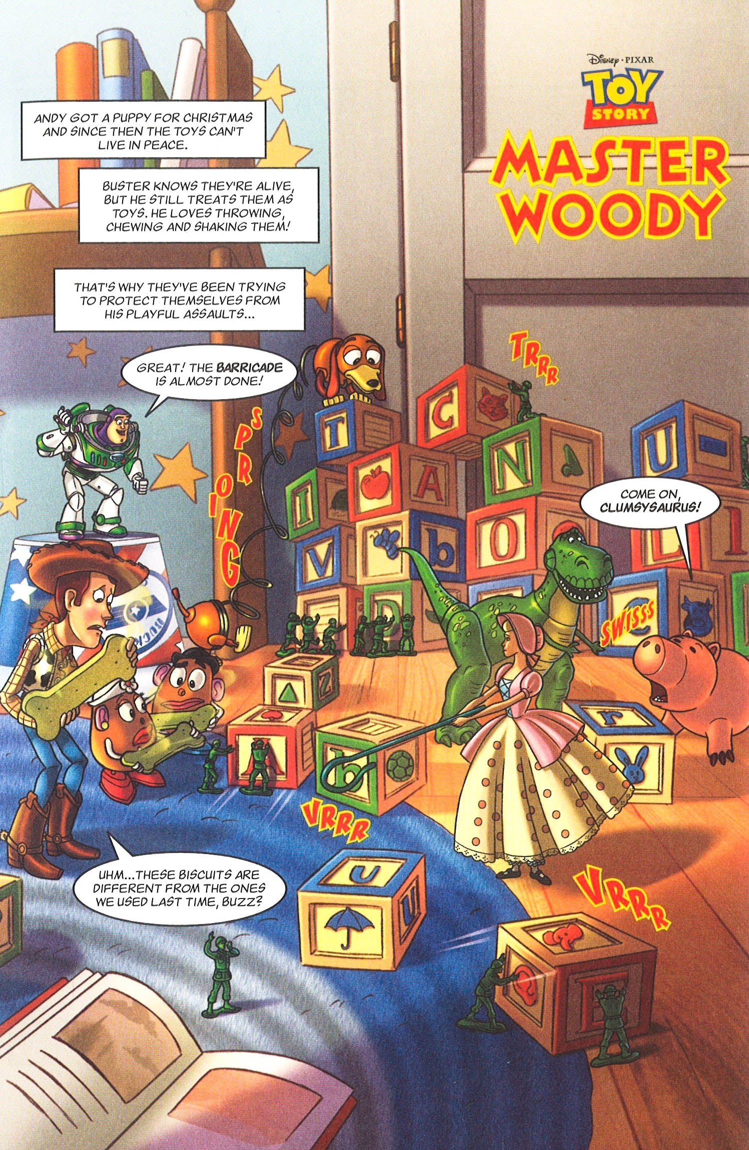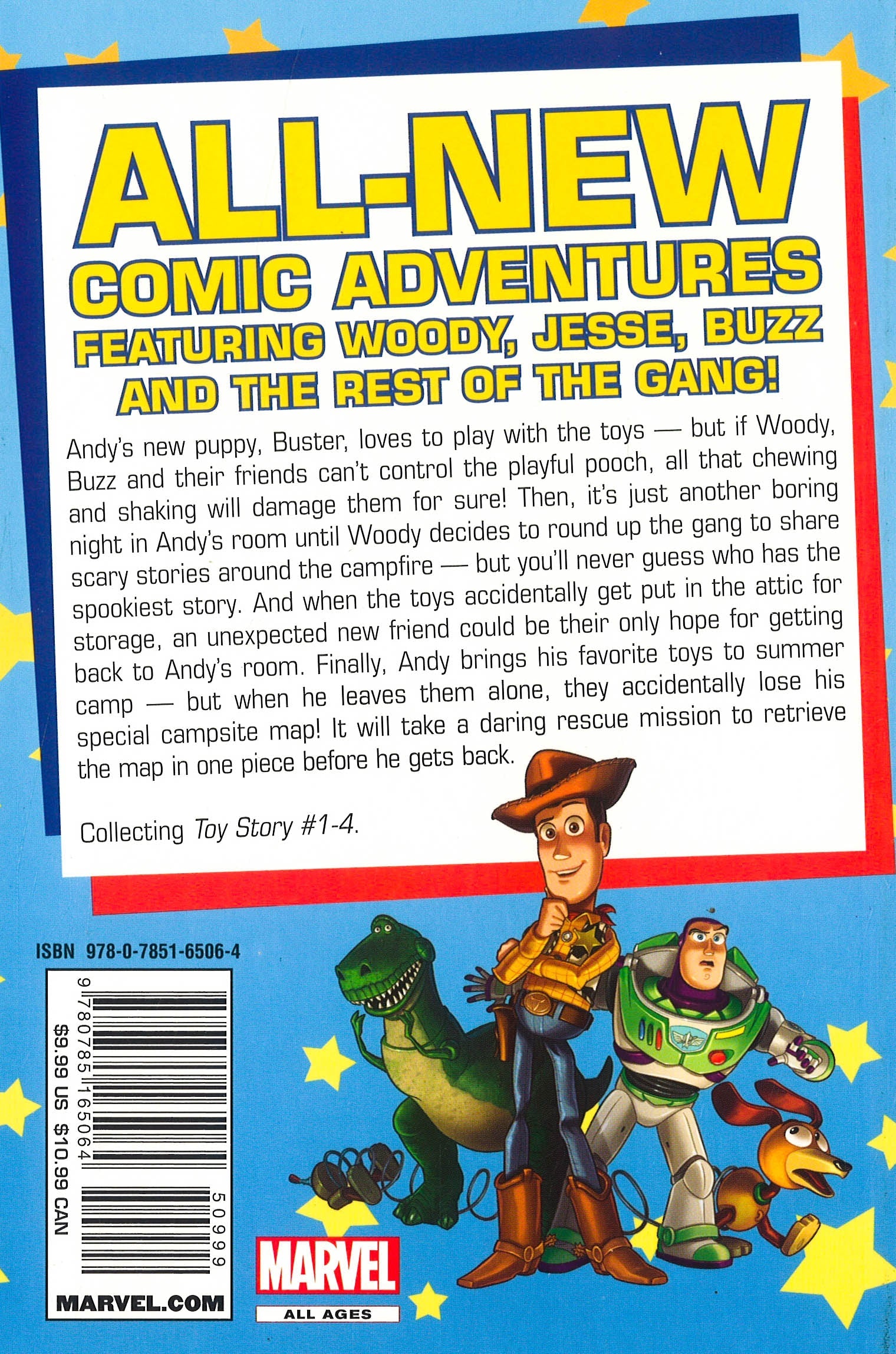 New adventures featuring Woody, Buzz Lightyear and all the rest! Andy's new puppy, Buster, loves to play with the toys - but if the gang can't control the playful pooch, all that chewing and shaking will damage them for sure! Plus, Woody decides to round up the gang to share scary stories around the campfi re! Then, Woody, Buzz, Rex and Slink explore new territory when they accidentally get put in the attic for storage! An unexpected new friend could be their only hope for getting back to Andy's room! And fi nally, Woody, Buzz and Jessie join Andy at summer camp! But when Andy leaves them alone, they accidentally lose his special campsite map! The toys attempt a daring rescue mission, but can they retrieve the map in one piece before Andy gets back? COLLECTING: TOY STORY 1-4