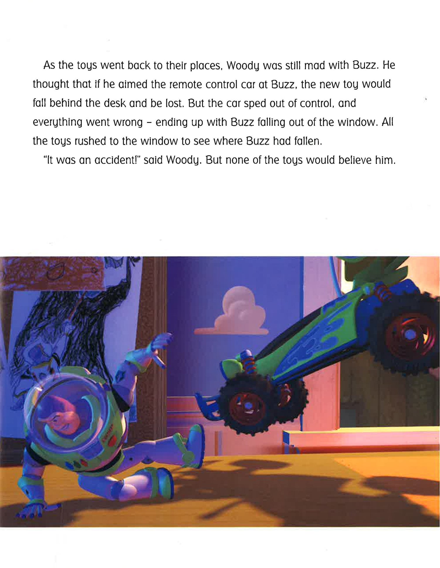 When Buzz Lightyear, a fancy new toy, arrives in Andy's room, Andy's old favourite, Woody, feels threatened. But the rivals are forced to work together when they are separated from the other toys and must find their way safely back to Andy's room.