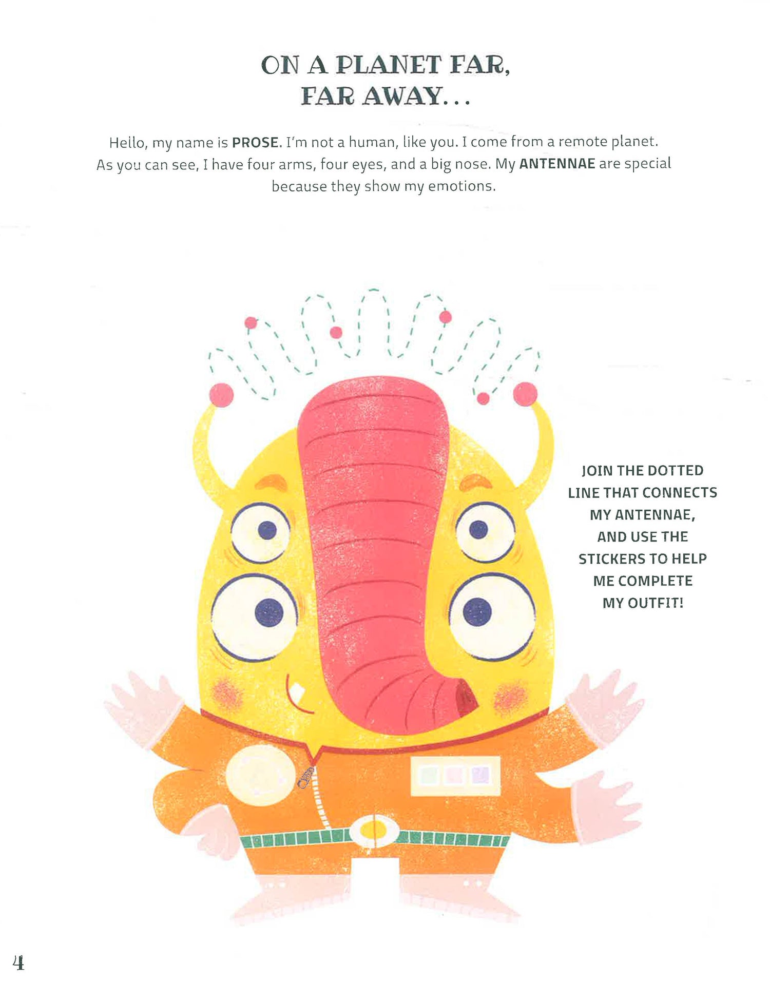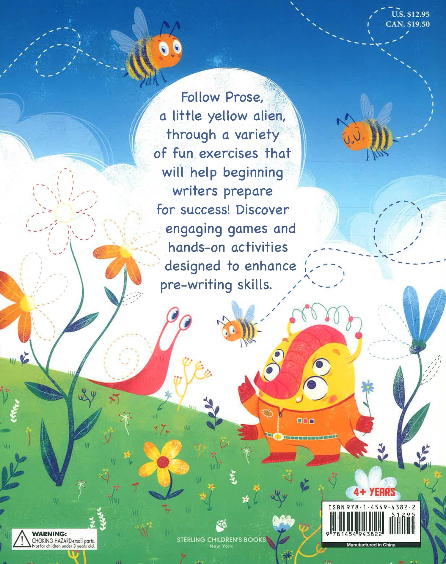 In this activity book, children will follow Prose, the little yellow alien, through a variety of fun exercises that will prepare them for writing success. Children will start by tracing fun stickers to train their hand movements, before progressing to lines, circles, and spirals: the building blocks that will later make up letters and numbers.