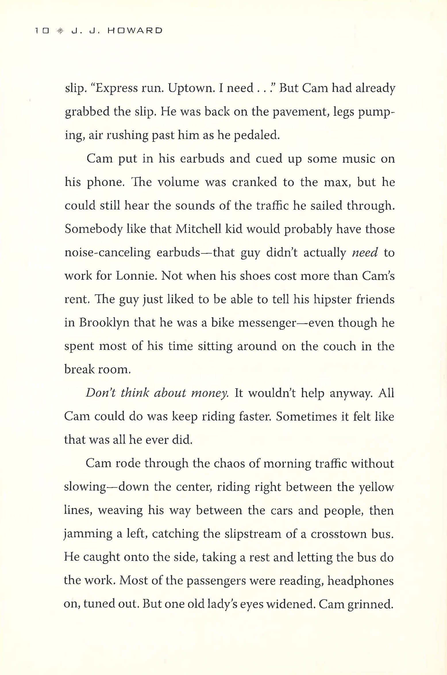 In the vein of great box-office blockbusters, the high-stakes romance here sizzles within this page-turning thriller that will leave readers feeling like they are flying through the streets of New York. Cam has come to accept the rhythm of his life as a bike messenger: racing up and down the streets of New York City from one run to the next. With no family to rely on and a mountain of debts, at least it s an honest way to help pay off his dangerous debtors.Cam s whole world comes crashing down on him one day when he runs into a beautiful stranger. After falling out of the sky and wiping out Cam and his bike, she disappears before he can find out anything about her. When he starts to see her around town, he quickly realizes that she is part of an underground group of teens who have turned NYC into their own parkour playground running, jumping, seemingly flying through the city like it s an obstacle course.Cam becomes fascinated with the sport and the beautiful stranger, Nikki. He falls in with the group, and they offer him the chance to make some extra money. But when the stakes become life or death, Cam is torn between following his heart and sacrificing everything to pay off his debts. *This book may have remainder mark*