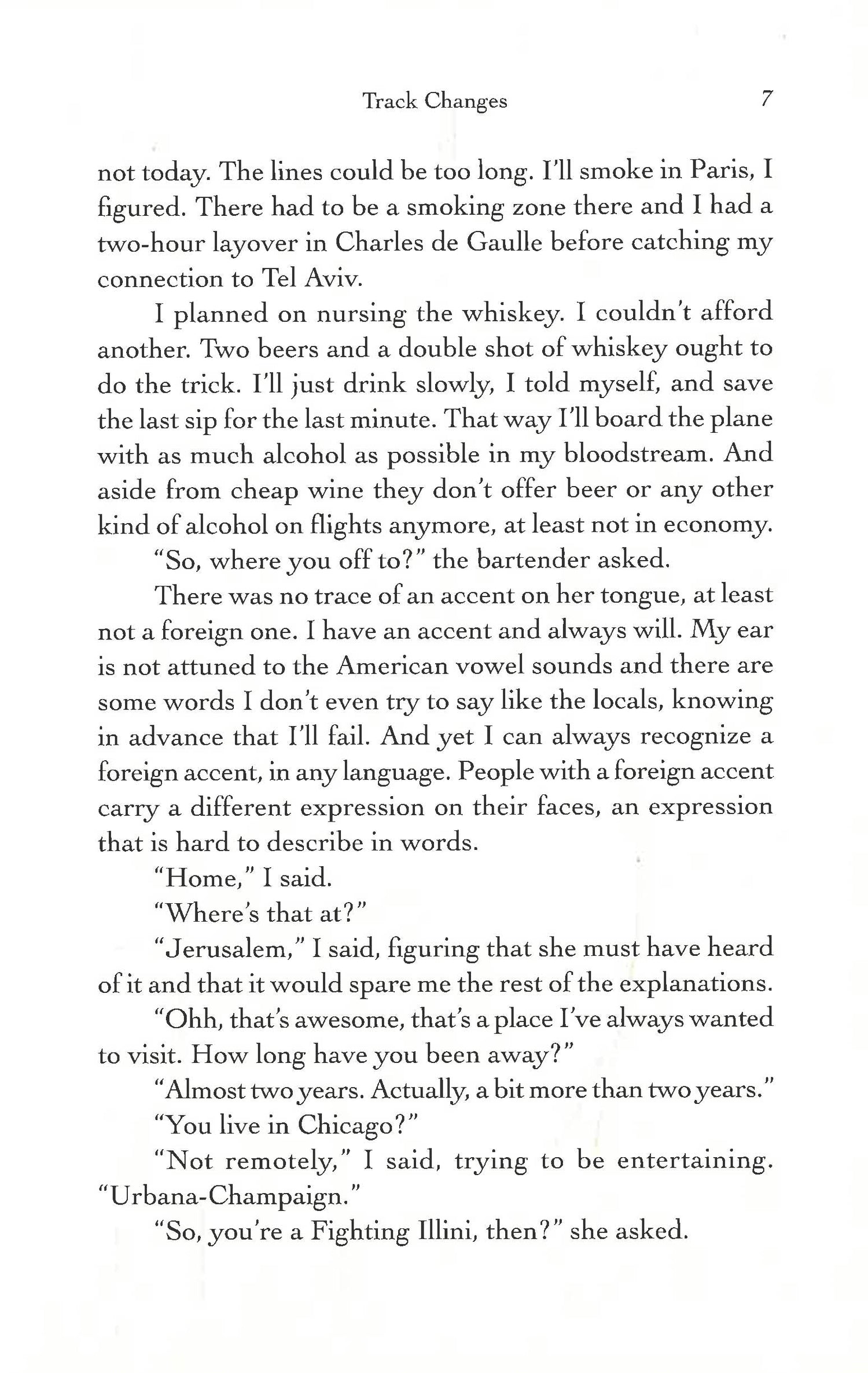Having emigrated to America years before, a nameless memoirist now residing in Illinois receives word that his estranged father, whom he has not spoken to in fourteen years, is dying. Leaving his wife and their three children, he returns to Jerusalem and to his hometown of Tira in Palestine to be by his family's side. But few are happy to see him back and, geographically and emotionally displaced, he feels more alienated from his life than ever. Sitting by his father's hospital bed, the memoirist begins to remember long-buried traumas, the root causes of his fallout with his family, the catalyst for his marriage and its recent dissolution, and his strained relationships with his children--all of which is strangely linked to a short story he published years ago about a young girl named Palestine. As he plunges deeper into his memory and recounts the history of his land and his love, the lines between truth and lies, fact and fiction become increasingly blurred. Track Changes is a stunningly original, poignant, and captivating exploration of alienation, love, country, and memory by one of the most important writers at work today.