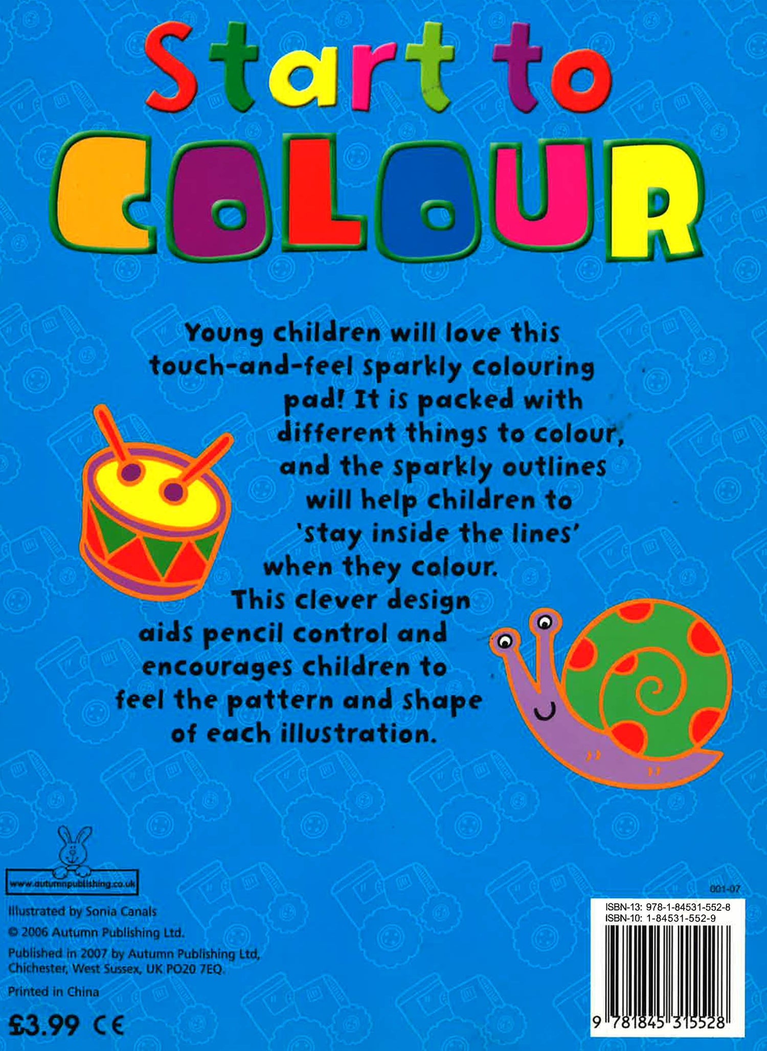 A wounderful series for very young children aimed at encouraging hand eye co-ordination. Each illustration is outlined with beautiful glittery lines to aid colouring.