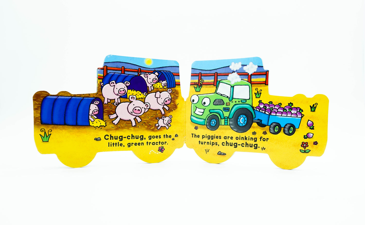 Chug-chug, goes the little, green tractor. There's lots to do on the farm.
