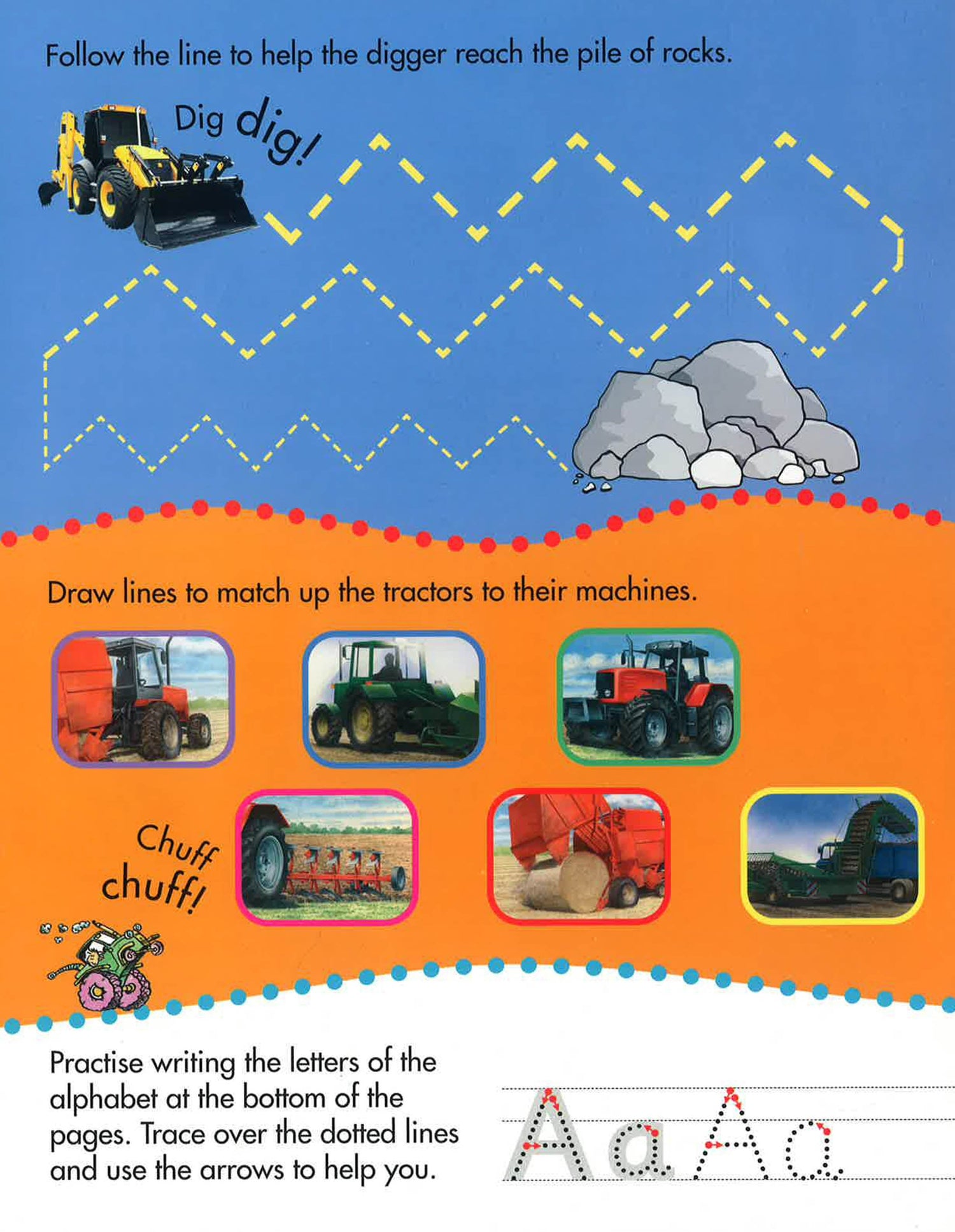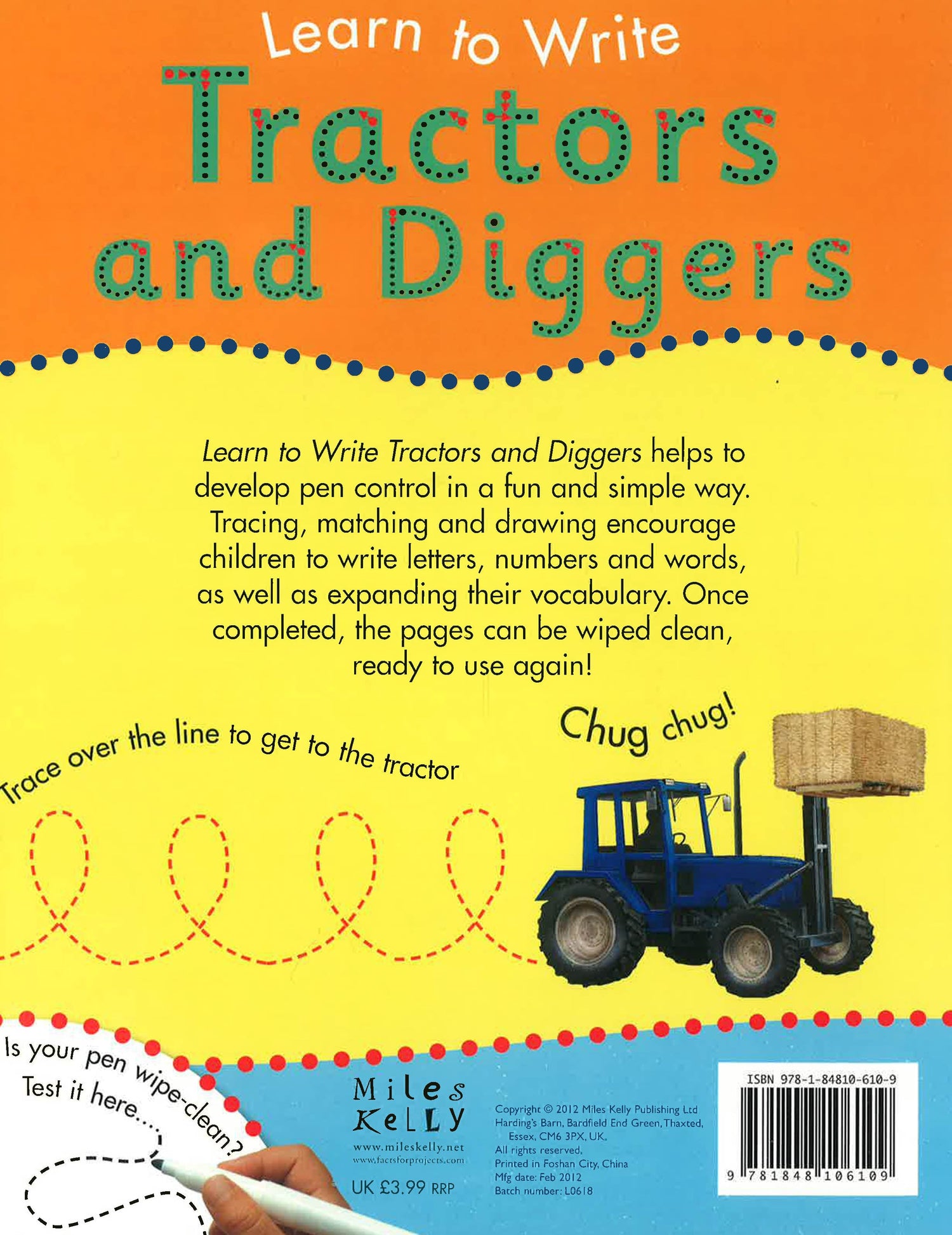 Learn to Write Tractors and Diggers helps to develop pen control in a fun and simple way. Tracing, matching and drawing encourage children to write letters, numbers and words, as well as expanding their vocabulary. Once completed, the pages can be wiped clean, ready to use again!