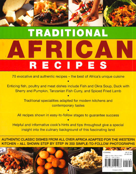 This title features 70 authentic dishes from all over Africa adapted for the Western kitchen - all shown step by step in 300 simple-to-follow photographs. It offers the best of Africa's unique cuisine, with traditional dishes, from Morocco to Mozambique, and from Tunisia's desert north to the green veldt of South Africa. It contains a wealth of information on typical ingredients, as well as helpful hints and tips that give an insight into the culinary background, making the book a superb source of ideas for beginners and experienced cooks alike. Enticing fish, poultry and meat dishes include Fish and Okra Soup, Duck with Sherry and Pumpkin, Tanzanian Fish Curry, and Spiced Fried Lamb. All the recipes have all been carefully adapted for modern kitchens, and are shown step by step in over 300 sizzling photographs. No other continent but Africa can boast such a rich and varied range of cooking styles, reflecting diverse cultural influences and an exotic blend of aromatic ingredients. The authentic tastes of this great land are brought together in an exciting collection of traditional African recipes. The chapters range from delicious hot and spicy appetizers to refreshing fruit desserts, and include tasty soups and snacks, salads, hearty traditional stews, and rich poultry and fish dishes. There are also recipes using the wide range of vegetables, beans and fruit that are available across Africa. This is an exciting, inspiring and practical cookbook, with recipes that are as easy to cook as they are authentic.