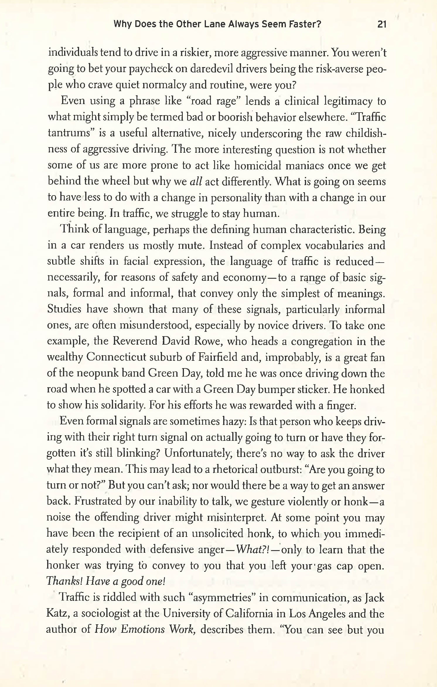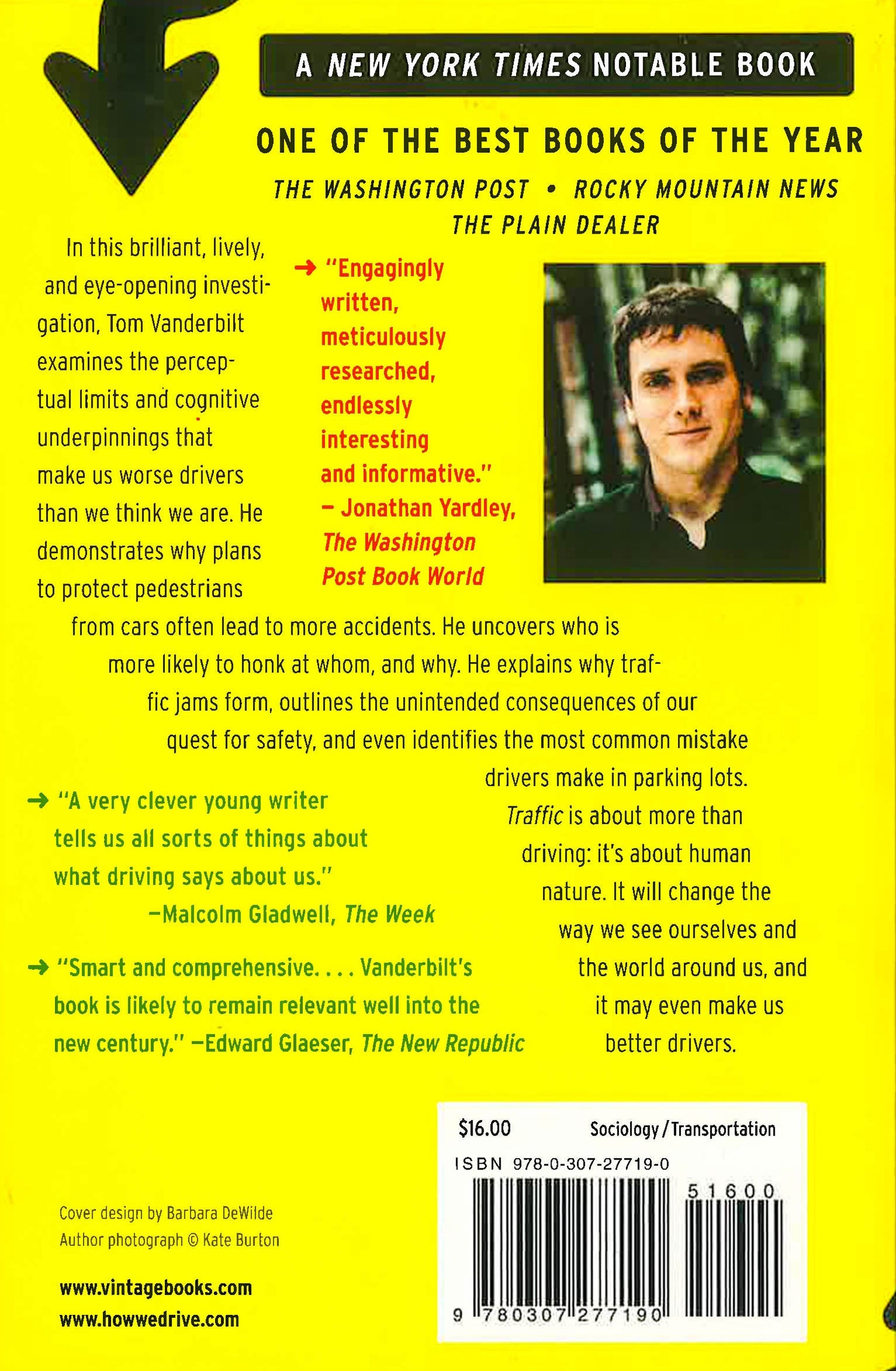 A New York Times Notable Book One of the Best Books of the Year The Washington Post - The Cleveland Plain-Dealer - Rocky Mountain News In this brilliant, lively, and eye-opening investigation, Tom Vanderbilt examines the perceptual limits and cognitive underpinnings that make us worse drivers than we think we are. He demonstrates why plans to protect pedestrians from cars often lead to more accidents. He uncovers who is more likely to honk at whom, and why. He explains why traffic jams form, outlines the unintended consequences of our quest for safety, and even identifies the most common mistake drivers make in parking lots. Traffic is about more than driving: it's about human nature. It will change the way we see ourselves and the world around us, and it may even make us better drivers. *This book may have remainder mark*