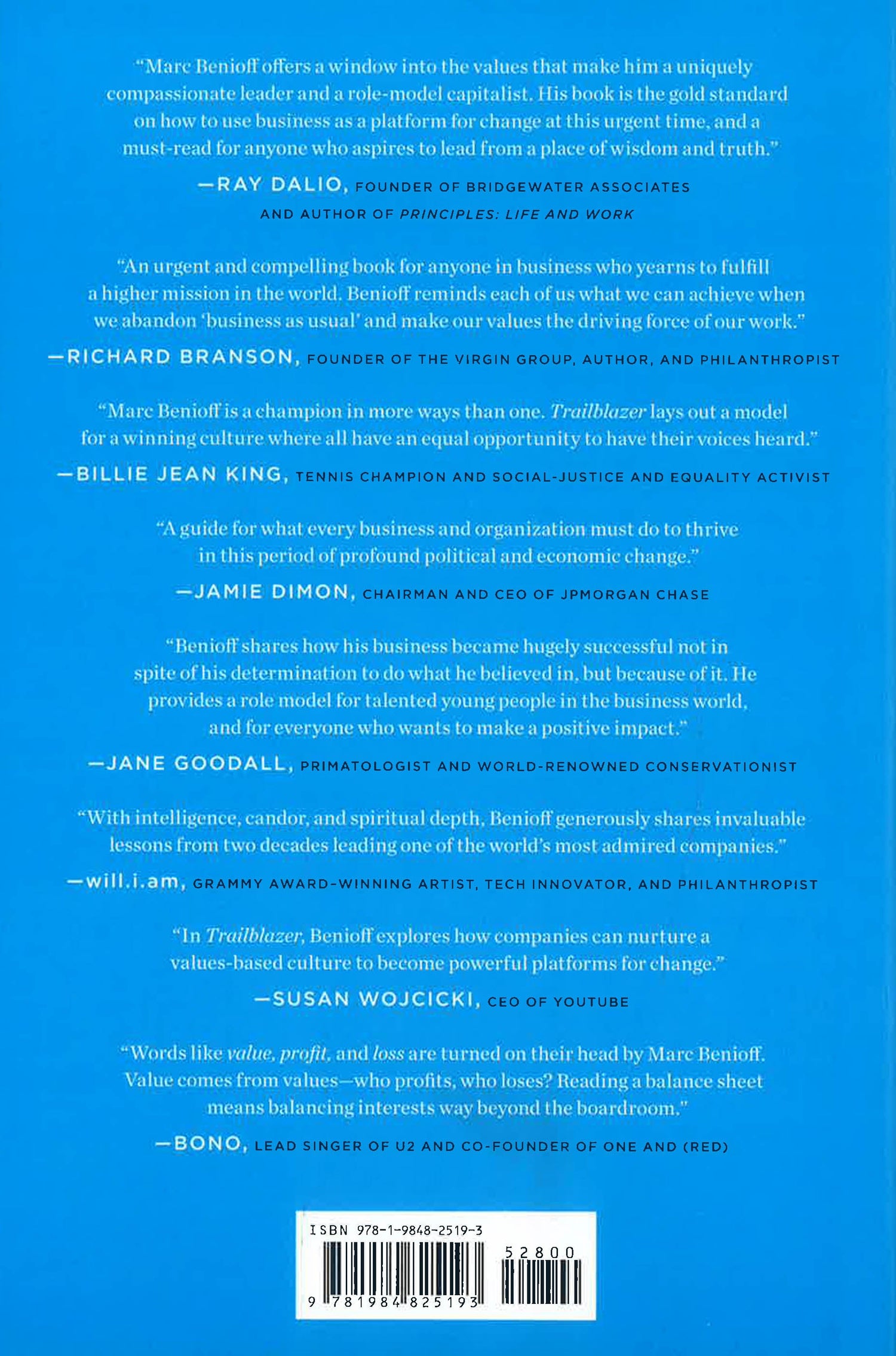 None of us in the business world can afford to sit on the sidelines and ignore what's going on outside the walls of our workplaces. In the future, profits and progress will no longer be sustainable unless they serve the greater good. Whether you run a company, lead a small team, or have just draped an ID badge around your neck for the first time, Trailblazer reveals how anyone can become an agent of change.