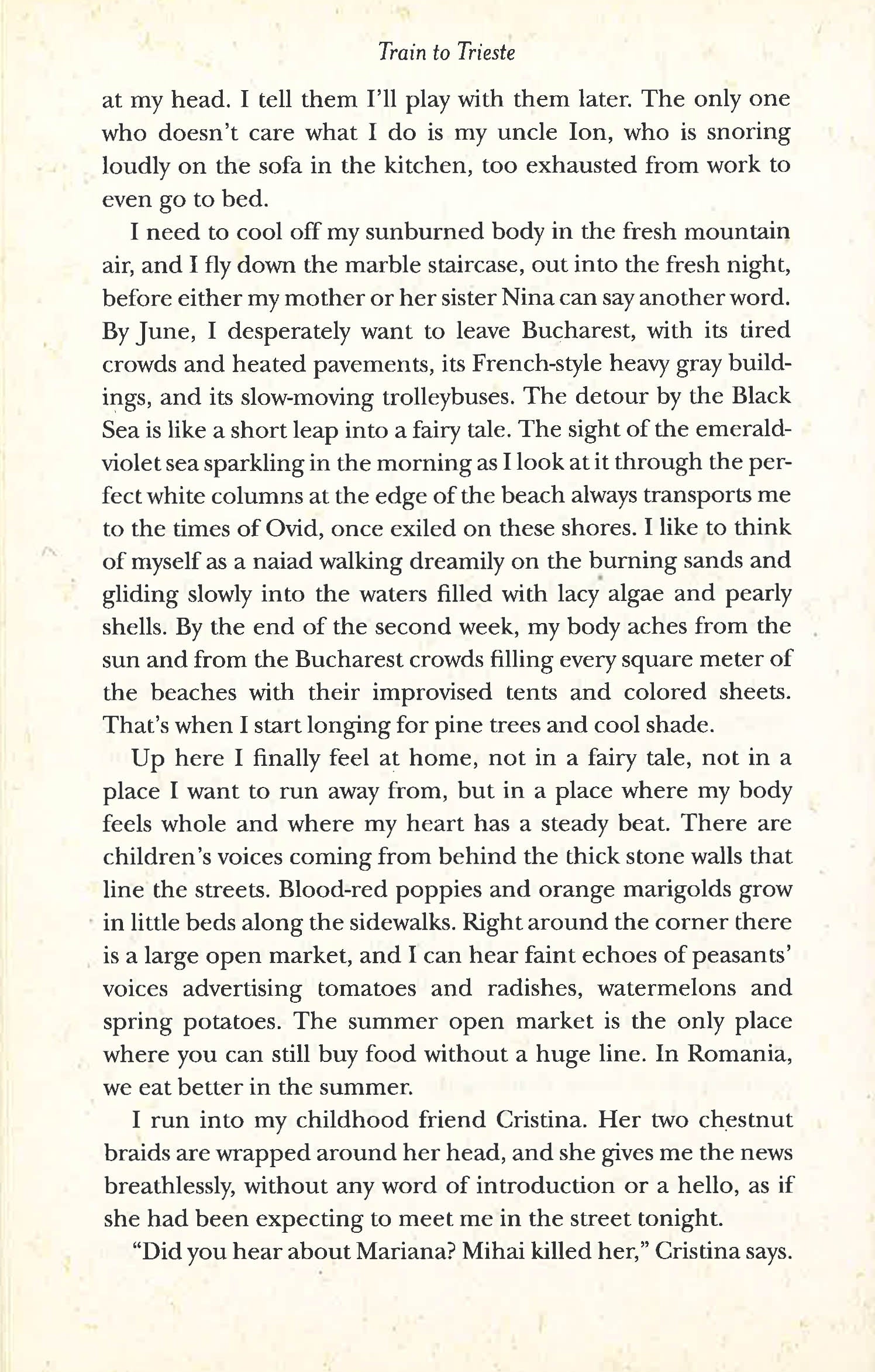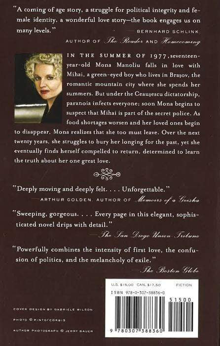 In the summer of 1977, seventeen-year-old Mona Manoliu falls in love with Mihai, a green-eyed boy who lives in Brasov, the romantic mountain city where she spends her summers. But under the Ceausescu dictatorship, paranoia infects everyone; soon Mona begins to suspect that Mihai is part of the secret police. As food shortages worsen and her loved ones begin to disappear, Mona realizes that she too must leave. Over the next twenty years, she struggles to bury her longing for the past, yet she eventually finds herself compelled to return, determined to learn the truth about her one great love. *This book may have remainder mark*