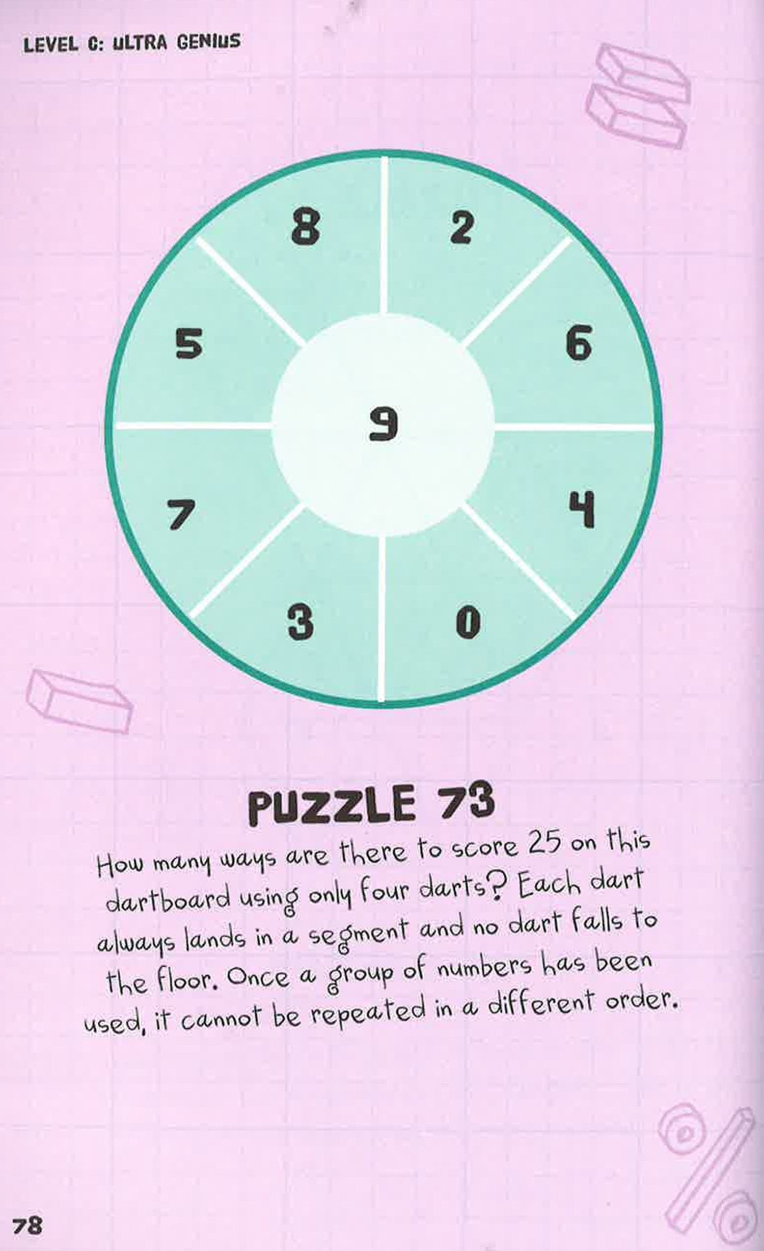 This holiday season, throw down the gauntlet to kids and send them on a series of exciting problem-solving quests that will get their brains buzzing. Designed by three puzzle-book pros and Mensa members, Brain-Scrambling Challenges is packed with questions that test kids' brains to the limit...and show them that problem solving = a lot of fun! Endlessly engaging (and shhh...ultimately educational), this book is packed with hours of stimulating entertainment. It includes: Almost 100 pages of challenging riddles, conundrums, and problems such as anagrams, diagrams, word problems, number searches, and more that will put puzzle lovers right in their element Three levels of difficulty--called Super Brain, Mega Mind, and Ultra Genius--so the book gets more challenging as it progresses Loads of quirky, fun illustrations of spaceships, big cats, wooly mammoths, and moreWinning text that encourages and challenges puzzle fanatics to keep going