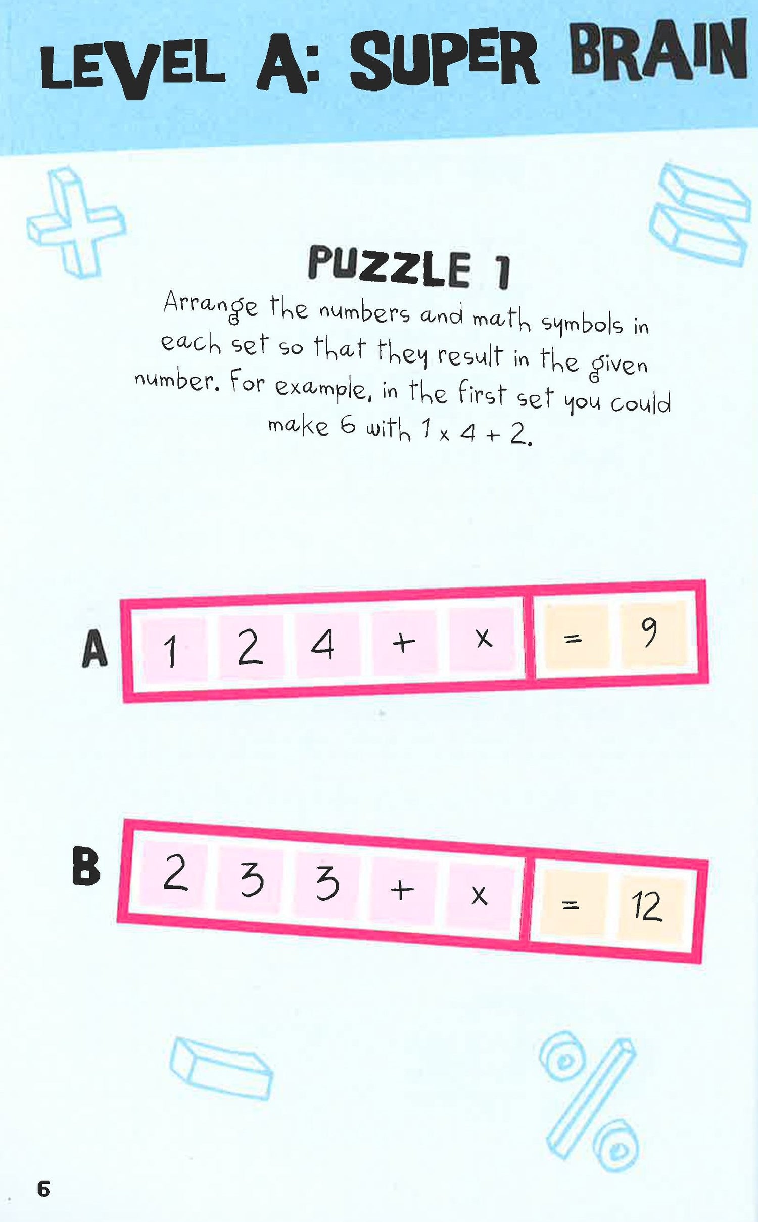 Hey kids--are you ready to train your brains? This series of fun books will really let kids give their brains a workout! Designed by a puzzle-book pro and the creator of the online brain-training site Brained Up (www.brainedup.com), these brain-teasing books are brimming with mind-scrambling puzzles that have been scrutinized and approved by British Mensa. In Cranium Crunchers, there's almost 100 pages of number stumpers, visual teasers, logic problems, and verbal tests. Split into three levels of difficulty--called Super Brain, Mega Mind, and Ultra Genius--the books get more challenging as they progress. Kids, adults, and anyone else who enjoys a good dose of mental calisthenics will find themselves hooked by each puzzle-solving challenge.