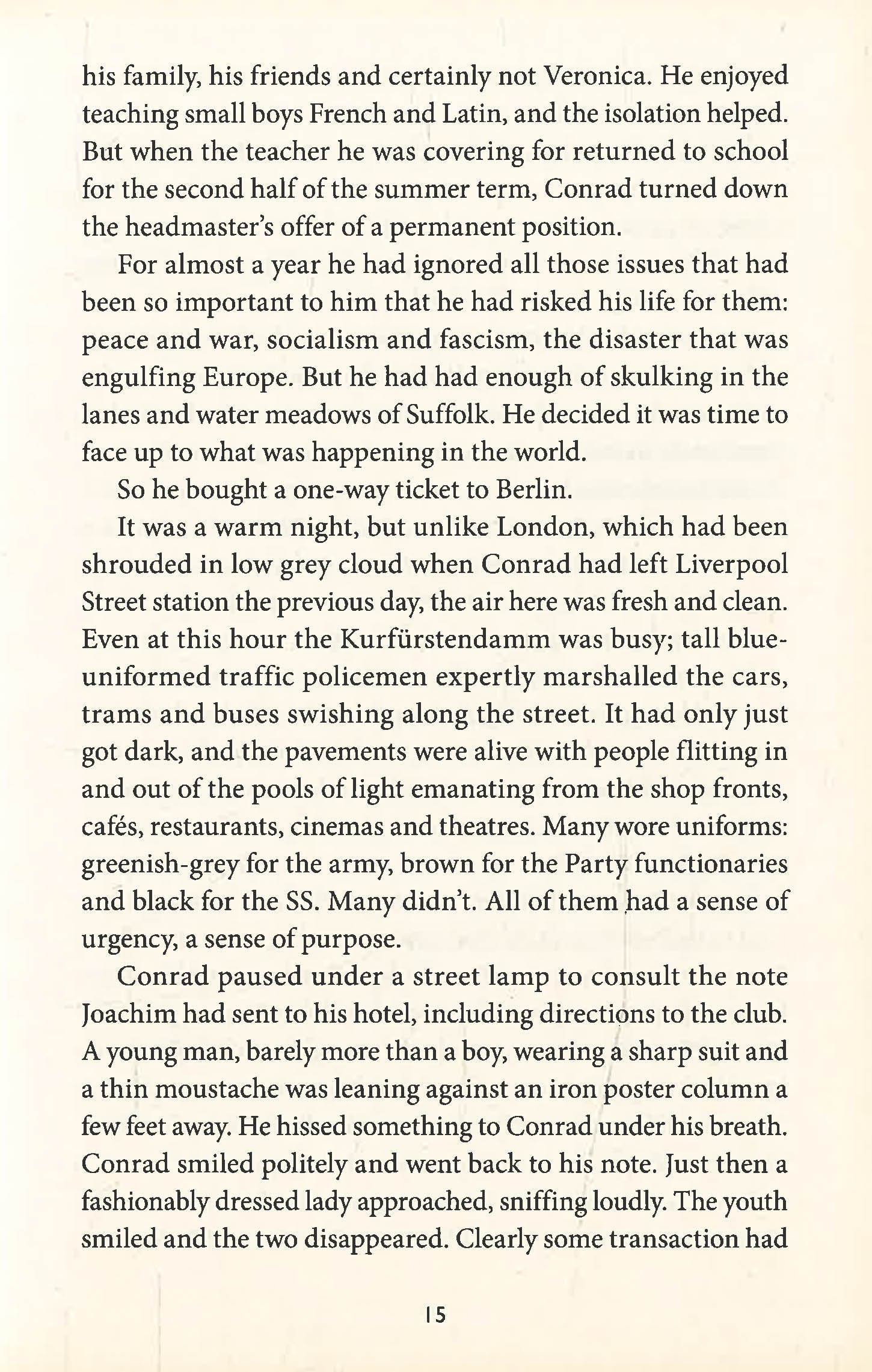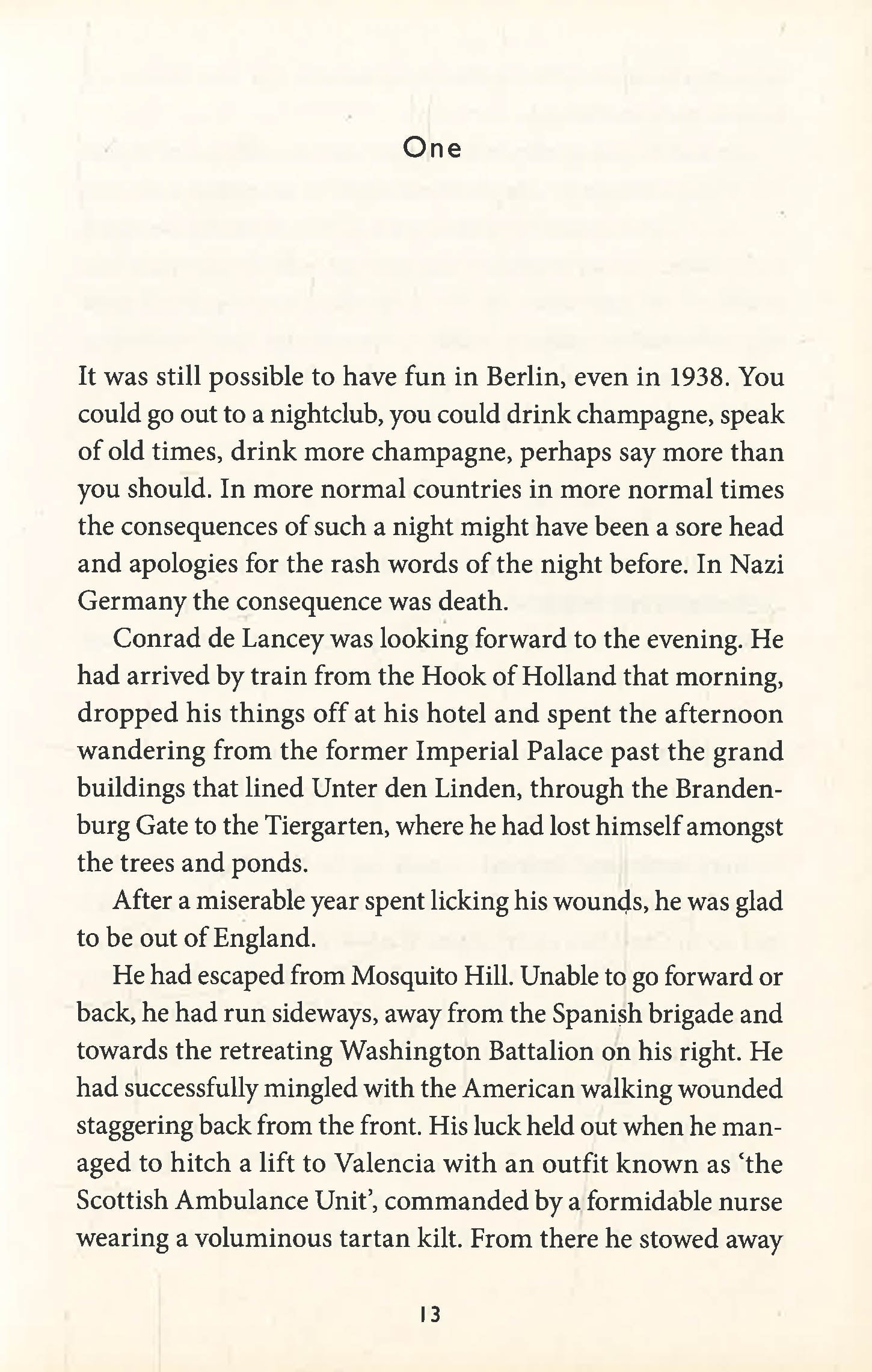 A nerve-shredding, intelligence thriller about the first plot to kill Hitler, from bestseller Michael Ridpath. Arriving in Nazi Germany, Englishman Conrad de Lancey feels sick at heart. Even Berlin - infamous haven of decadence and vice - salutes fascism. Himmler's black-shirted troops rule the city, and every German arm bears a Swastika. But does every German heart belong to Hitler? When Conrad is arrested by the Gestapo on suspicion of spying, he is rescued by Theo, an old friend from university, now a lieutenant of the Wehrmacht. Together they are drawn into a world of danger and deceit, of plots, paranoia and intrigue where the brave few are united by a single ambition: to free the fatherland from the Fuhrer.