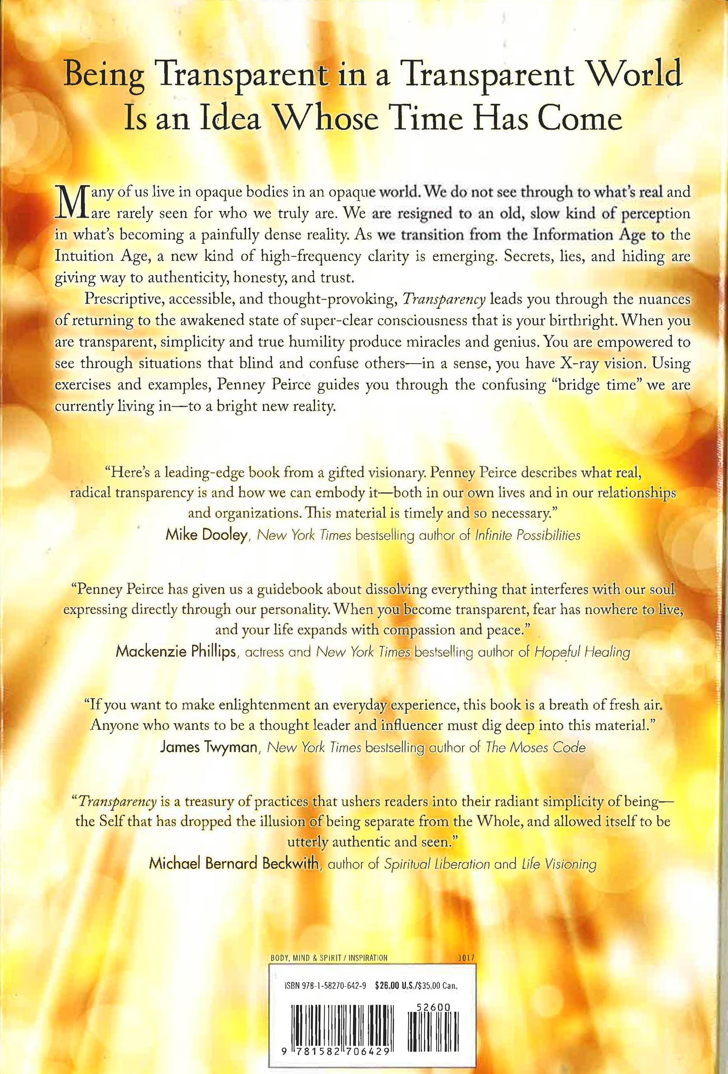 A groundbreaking book with an inside-out view of personal transformation and the path to everyday enlightenment by letting go of the clutter, defense, and fears to instead focus on building the courage to be honest, vulnerable, authentic, and super-clear.Following the bestsellers The Intuitive Way, Frequency, and Leap of Perception, Transparency is the next book in Penney Peirce’s award-winning, visionary series of guidebooks on personal and societal transformation. Timely and revolutionary, Penney shows us how to let go of everything that gets in our way - the obstacles, clutter, and fears - to truly achieve greater authenticity, clarity of purpose, and feelings of belonging and joy. By transforming our opaque reality into a state of transparency, the dividing lines that fragment and isolate us melt away and all that’s left is the true self - connecting us to everything and everyone.Transparency helps you learn that when you’re transparent, there is great power in being seen for all of who you are. Secrets, lies, and hiding are no longer functional. Honesty, simplicity, compassion, and true humility produce genius. And, when you’re transparent, you’re empowered to see through situations that blind and confuse others. It’s as though you suddenly have Superman’s X-ray vision, and this enables you to reach just-right solutions, insights, and develop your ability to “see through,” so your intuition can skyrocket.Prescriptive, accessible, and thought-provoking, Transparency aims to help you identify your soul-blocking habits, find the insights being masked, and return these negative patterns back into the clear light of the unified field. Each piece of clutter dissolved, understood, and released creates greater transparency, opening us to experience our true selves and all the joys of life.