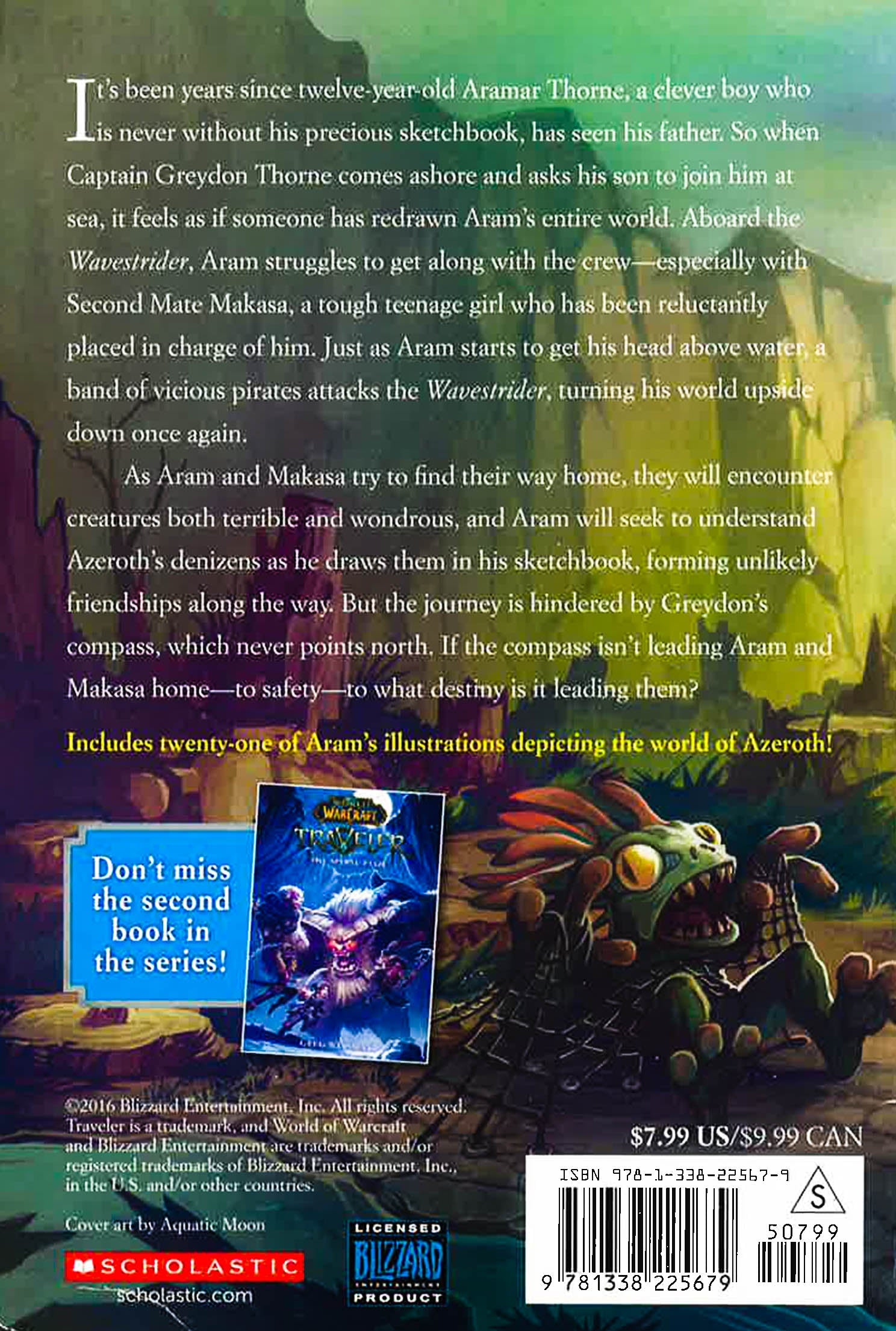 It's been years since twelve-year-old Aramar Thorne, a clever boy who is never without his precious sketchbook, has seen his father. So when Captain Greydon Thorne comes ashore and asks his son to join him at sea, it feels as if someone has redrawn Aram's entire world. At sea, Aram struggles to get along with the Wavestider's crew--especially second mate Makasa, a tough teenaged girl. Just as Aram starts to get his head above water, a band of vicious pirates attack the Wavestrider, turning his world upside down once again. As Aram and Makasa try to find their way home, they encounter creatures both terrible and wondrous, and Aram will seek to understand Azeroth's denizens as he draws them in his sketchbook. But the journey is hindered by Greydon's compass, which never points north. If the compass isn't leading Aram and Makasa home--to safety--to what destiny is it leading?