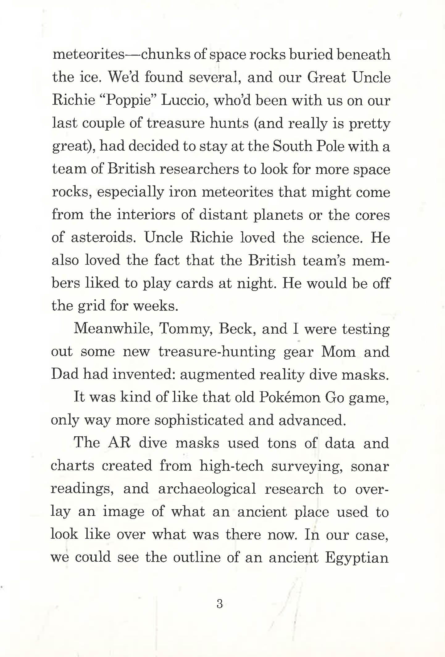 The Kidd family is on an exciting new mission: use the augmented reality gear their parents created to uncover long-lost treasure. But then their ship, The Lost, explodes in a ball of fire! Now Bick, Beck, Tommy, and Storm are stranded on a raft in the Mediterranean Sea, and their parents have been kidnapped by maniacal treasure hunters. It’s up to the Kidd siblings to follow clues around the globe to uncover an ancient treasure and save their parents . . . before they lose everything!