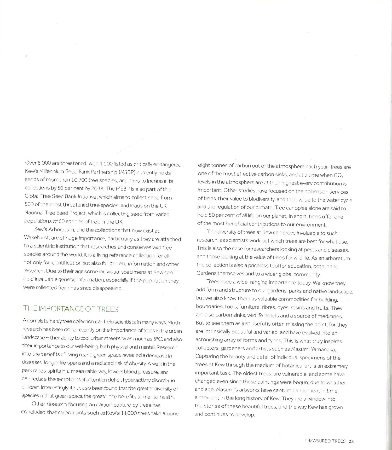 This book is a celebration of trees, with beautiful botanical art at its centrepiece, accompanied by an entertaining and informative text. The paintings by Japanese artist Masumi Yamanaka illustrate the oldest and finest trees growing at the Royal Botanic Gardens, Kew, showing the flowers and foliage and sometimes fruit at different stages throughout the year.