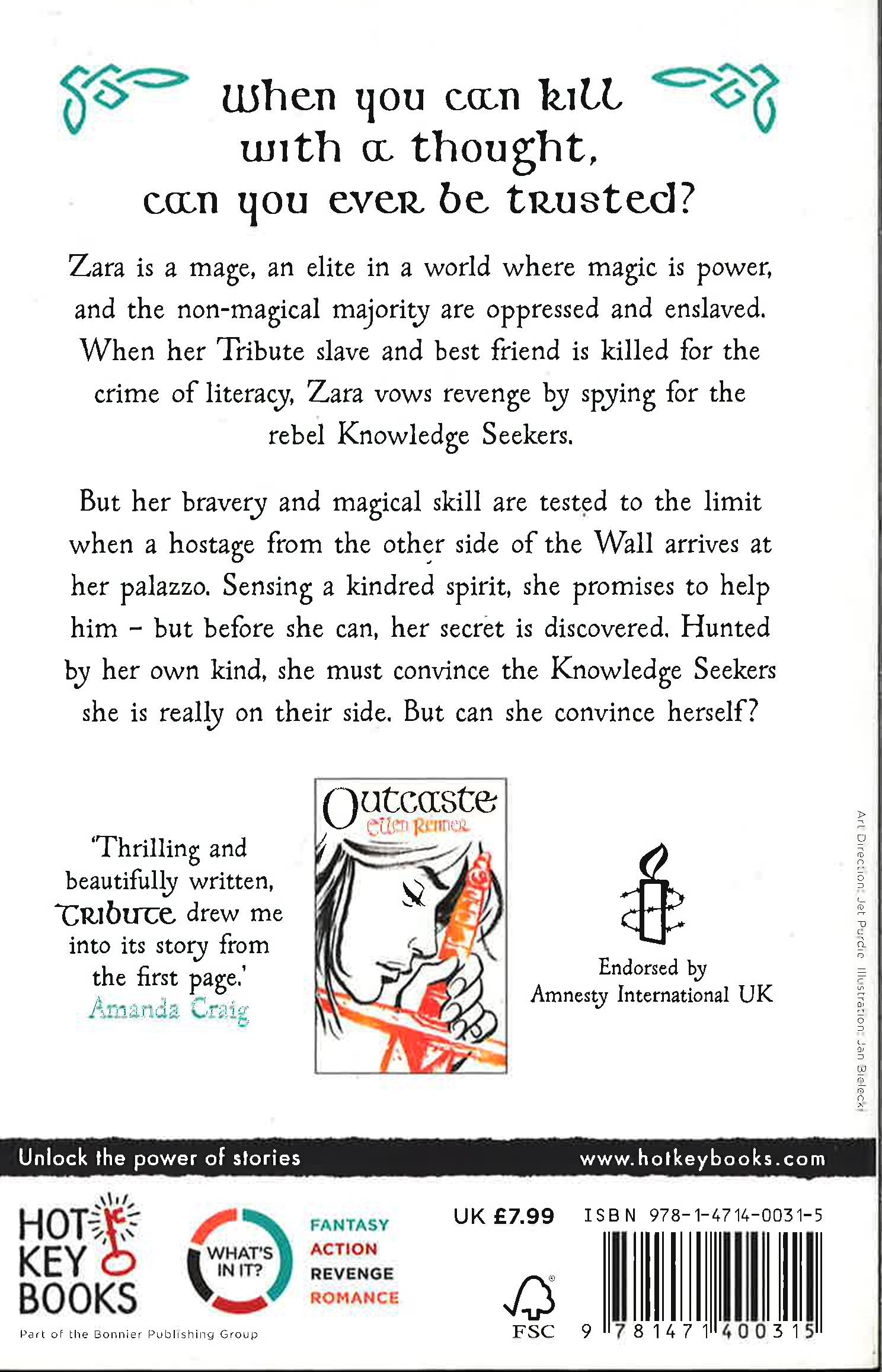 Betrayed by her own father, Zara has waited years for revenge, and will stop at nothing to get it What if your greatest enemy was yourself? Zara is a mage, one of the elite in a world where magic is power, and the non-magical majority are oppressed and enslaved. When her Tribute slave and best friend is killed for the crime of literacy, Zara vows revenge by spying for the rebel Knowledge Seekers. But her bravery and magical skill are tested to the limit when a hostage from the other side of the Wall arrives at her palazzo. Sensing a kindred spirit, she promises to help him - but before she can, her secret is discovered. Hunted by her own kind, she must convince the Knowledge Seekers she is really on their side. But can she convince herself? Pain, romance, defiance and revenge combine in this powerfully written - and breathtakingly envisioned - YA fantasy.