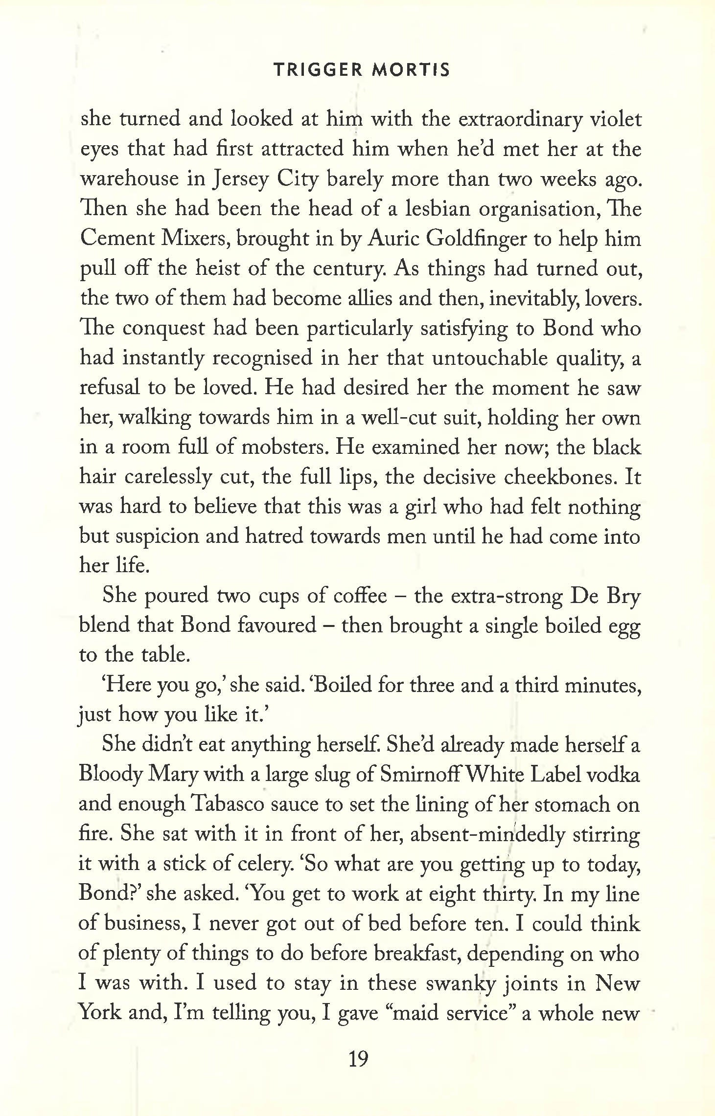 Literary legend James Bond returns to his 1950s heyday in this exhilarating thriller by Sunday Times bestselling author Anthony Horowitz. It's 1957 and James Bond (agent 007) has only just survived his showdown with Auric Goldfinger at Fort Knox. By his side is Pussy Galore, who was with him at the end. Unknown to either of them, the USSR and the West are in a deadly struggle for technological superiority. And SMERSH is back.The Soviet counter-intelligence agency plans to sabotage a Grand Prix race at the most dangerous track in Europe. But it's Bond who finds himself in the driving seat and events take an unexpected turn when he observes a suspicious meeting between SMERSH's driver and a sinister Korean millionaire, Jai Seong Sin. Soon Bond is pitched into an entirely different race uncovering a plan that could bring the West to its knees.Welcoming back familiar faces, including M and Miss Moneypenny, international bestselling author Anthony Horowitz ticks all the boxes: speed, danger, strong women and fiendish villains, to reinvent the golden age of Bond in this brilliantly gripping adventure. Trigger Mortis is also the first James Bond novel to feature previously unseen Ian Fleming material.This is James Bond as Fleming imagined him.