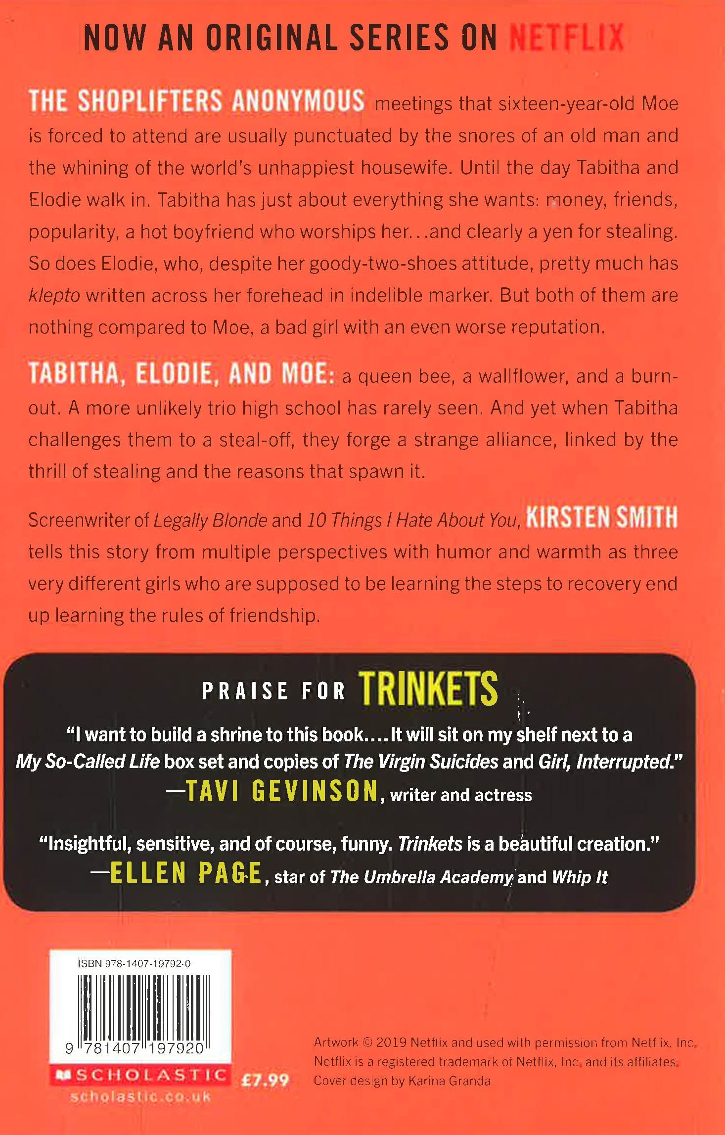 Tabitha, Elodie, and Moe: a beauty queen, a wallflower, and a burnout-a more unlikely trio high school has rarely seen. And yet, when Tabitha challenges them to a steal-off, so begins a strange alliance linked by the thrill of stealing and the reasons that spawn it. Now a Netflix Original Series! The Breakfast Club meets Leah on the Offbeat in this story of female friendships that break all the rules. The Shoplifters Anonymous meetings that sixteen-year-old Moe is forced to attend are usually punctuated by the snores of an old man and the whining of the world's unhappiest housewife. Until the day that Tabitha Foster and Elodie Shaw walk in. Tabitha has just about everything she wants: money, friends, popularity, a hot boyfriend who worships her...and clearly a yen for stealing. So does Elodie, who, despite her goodie-two-shoes attitude pretty much has "klepto" written across her forehead in indelible marker. But both of them are nothing compared to Moe, a bad girl with an even worse reputation. Tabitha, Elodie, and Moe: a beauty queen, a wallflower, and a burnout - a more unlikely trio high school has rarely seen. And yet, when Tabitha challenges them to a steal-off, so begins a strange alliance linked by the thrill of stealing and the reasons that spawn it. Hollywood screenwriter Kirsten Smith tells this story from multiple perspectives with humour and warmth as three very different girls who are supposed to be learning the steps to recovery end up learning the rules of friendship.
