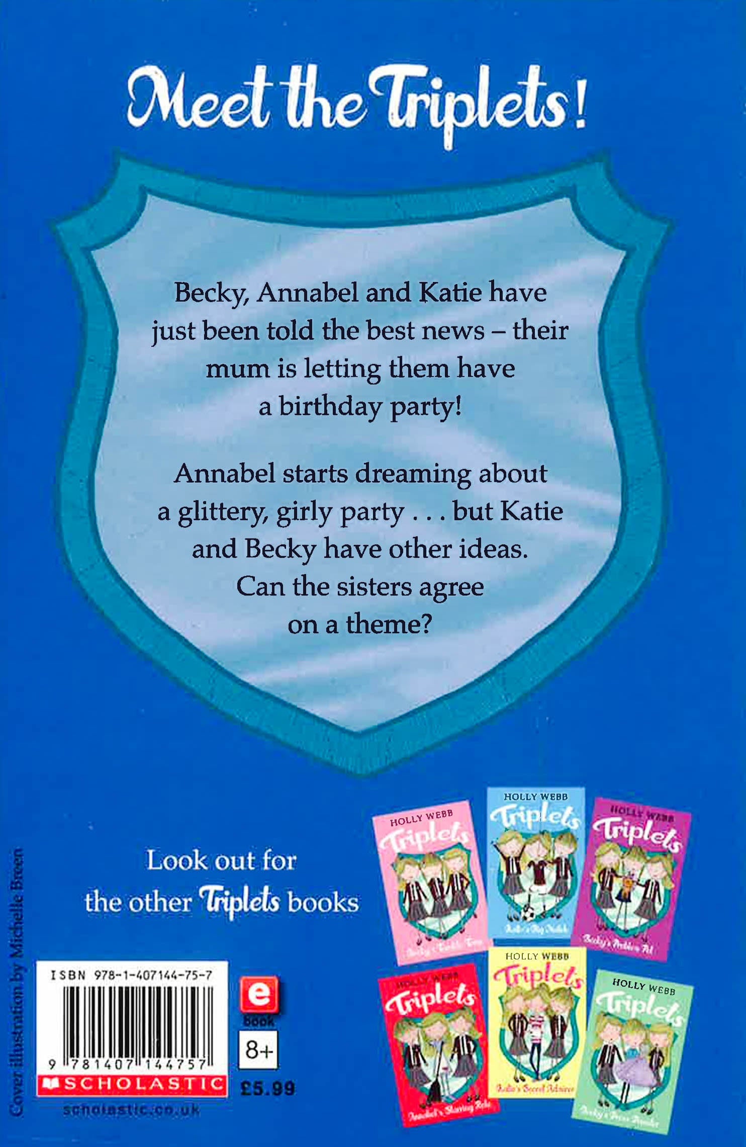 TRIPLETS is a much-loved series from a bestselling author, Holly Webb, rejacketed for a new generation of fans. It's the triplets' birthday and Annabel's determined to make their party the most glittery, gorgeous event she can. But she's forgotten that it's her sisters' party too - can the triplets agree on how to celebrate? TRIPLETS is a much-loved series from a bestselling author, Holly Webb, rejacketed for a new generation of fans. It's the triplets' birthday and Annabel's determined to make their party the most glittery, gorgeous event she can...But she's kind of forgotten that it's her sisters' party too - can the triplets ever agree on how to celebrate?