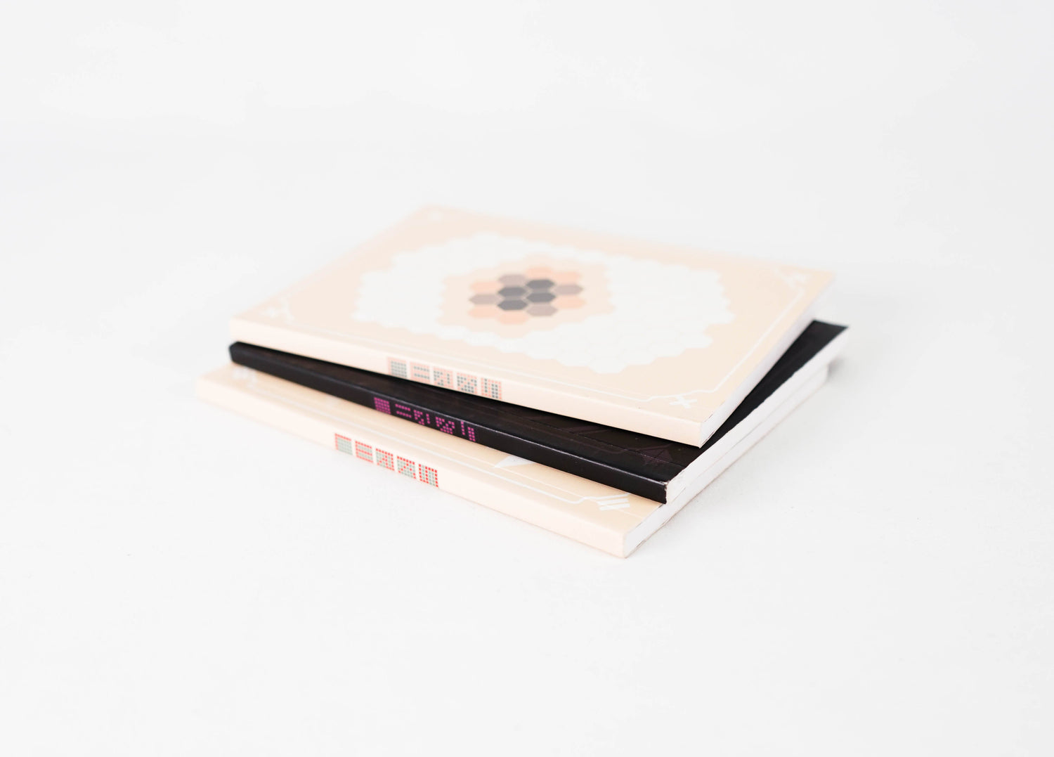 Sleek and stylish, these three mini-journals are housed in a clear plastic fold-out slipcase.