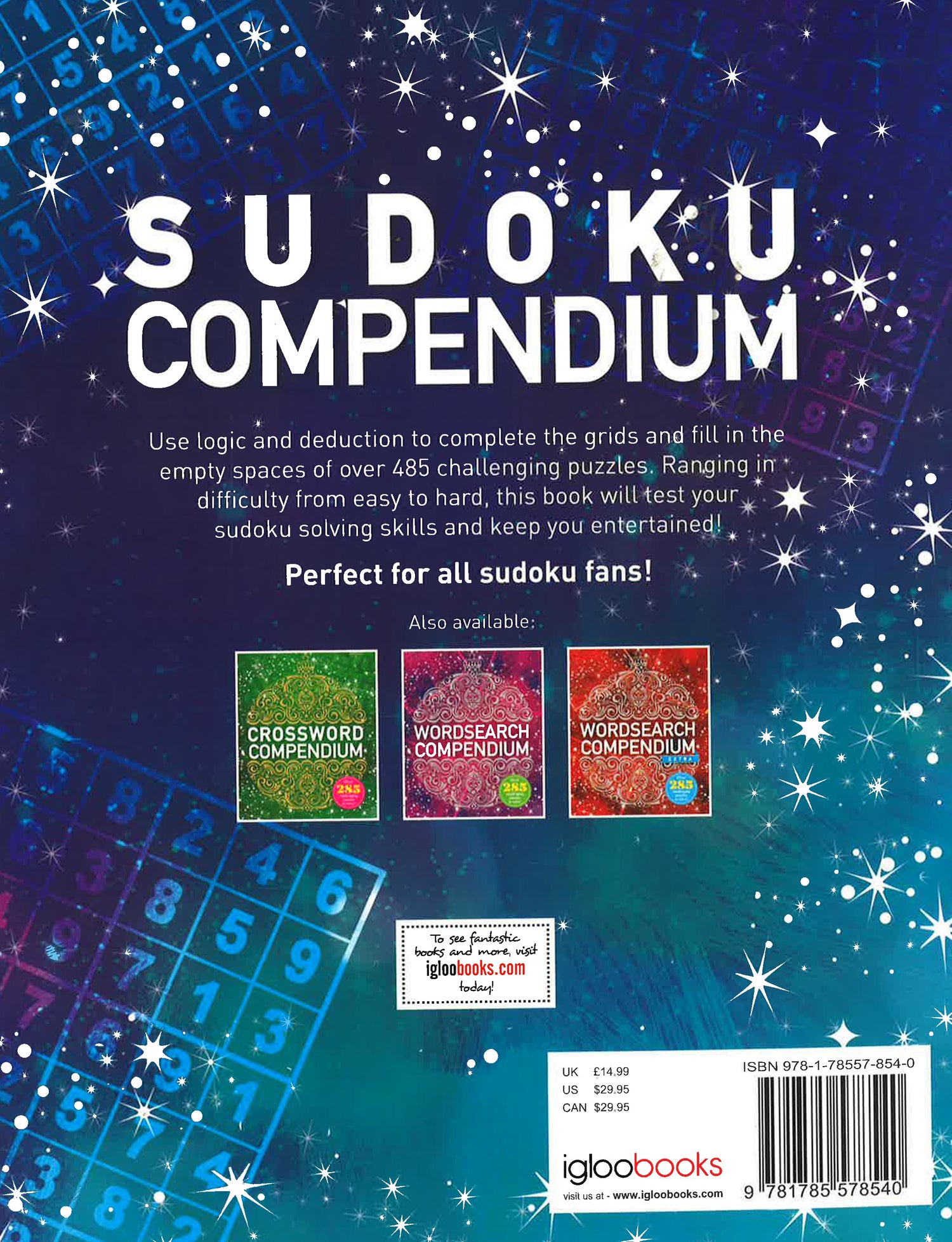 Use logic and deduction to complete the grids and fill in the empty spaces of over 485 challenging puzzles. Ranging in difficulty from easy to hard, this book will test your sudoku solving skills and keep you entertained! Perfect for all sudoku fans!
