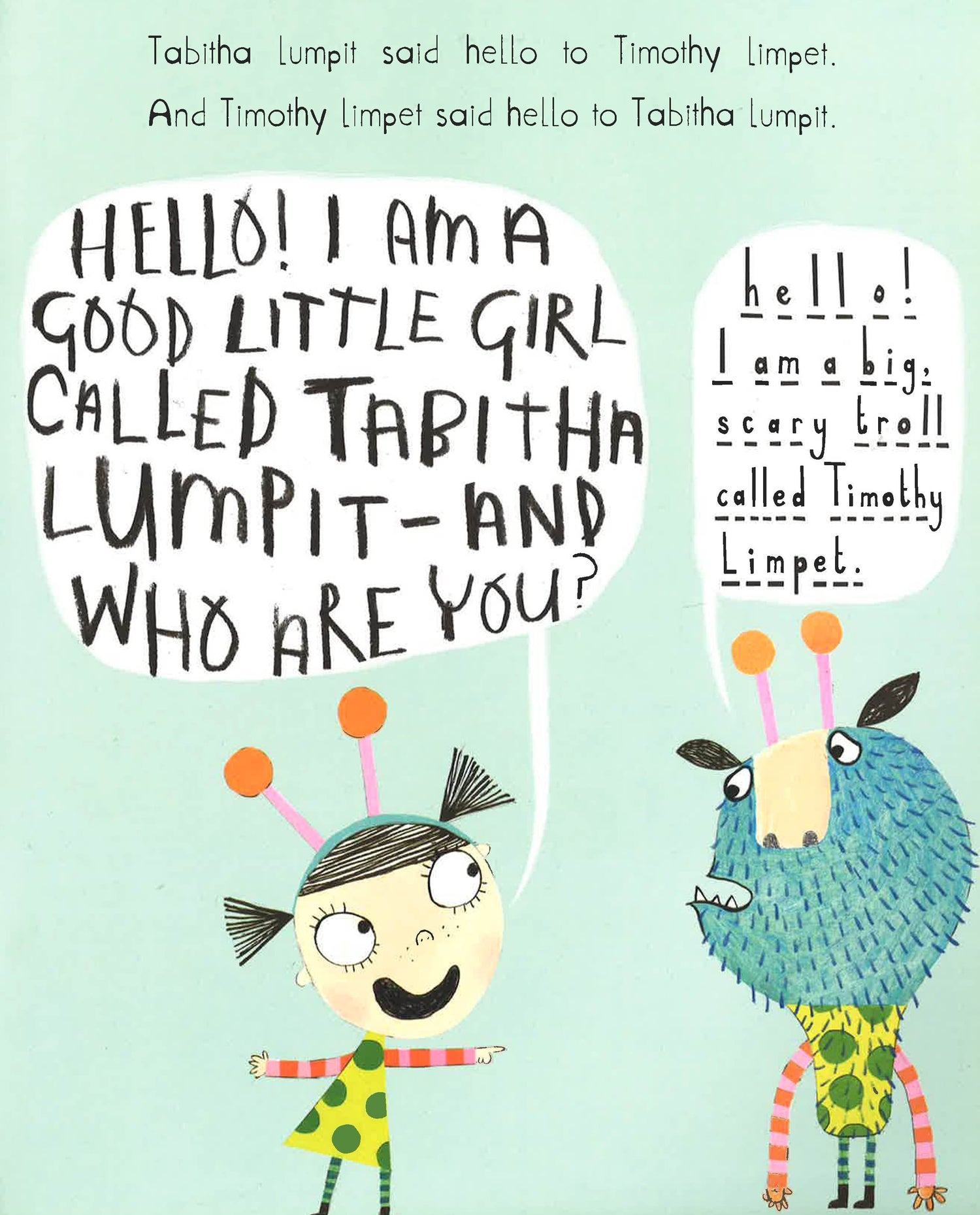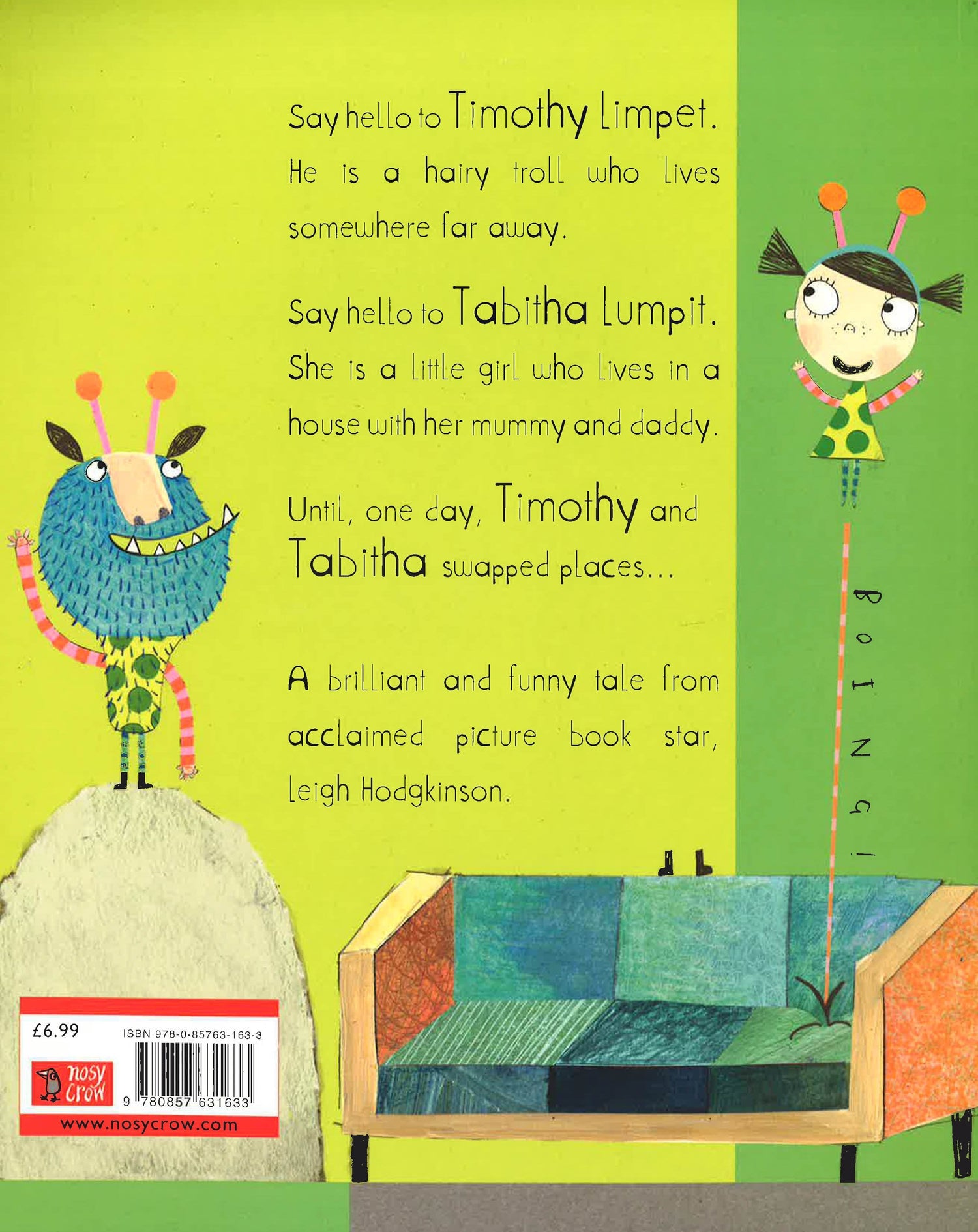 Timothy Limpet feels out of place in the troll family - he likes things to be just so, and most trolls, frankly, don't. Tabitha Lumpit likes things to be loud, loopy and messy and she feels like a fish out of water in her very neat family. Sometimes they wonder if their families really see them for who they are, so when Timothy and Tabitha meet on the bridge they each decide the other's family is a better fit and swap places . . . with hilarious and touching results. Based around the time-honoured theme of home is where the heart is, this warm and witty story is a celebration of the individual and offers a valuable lesson on not judging others.